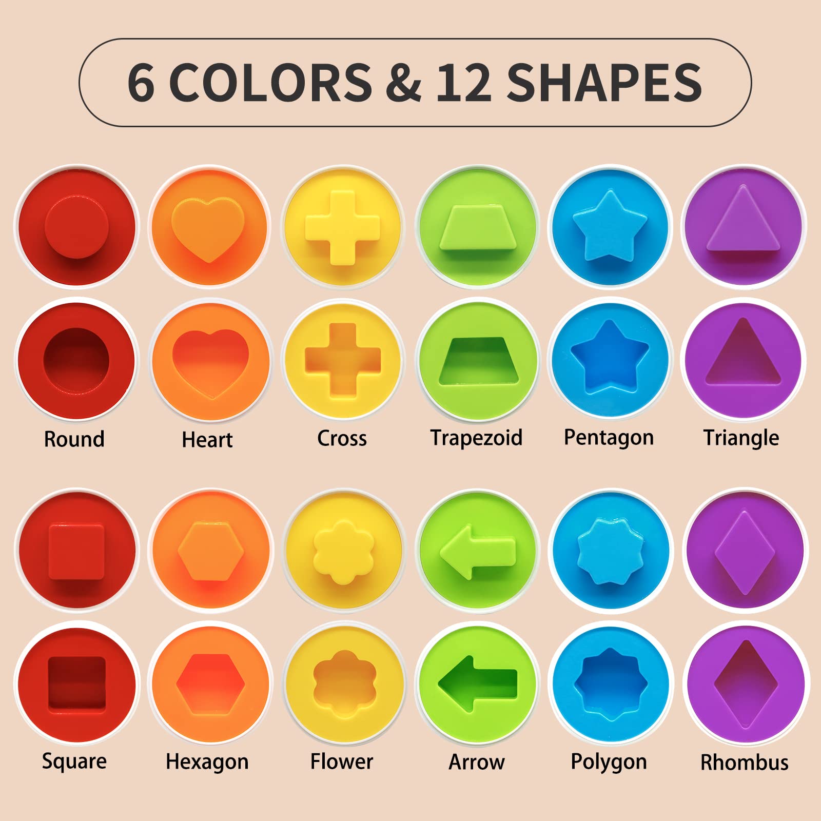 Moontoy Matching Eggs For Toddlers, 12Pcs Preschool Educational Learning Color & Shape Recognition Stem Toy- Montessori Geometri