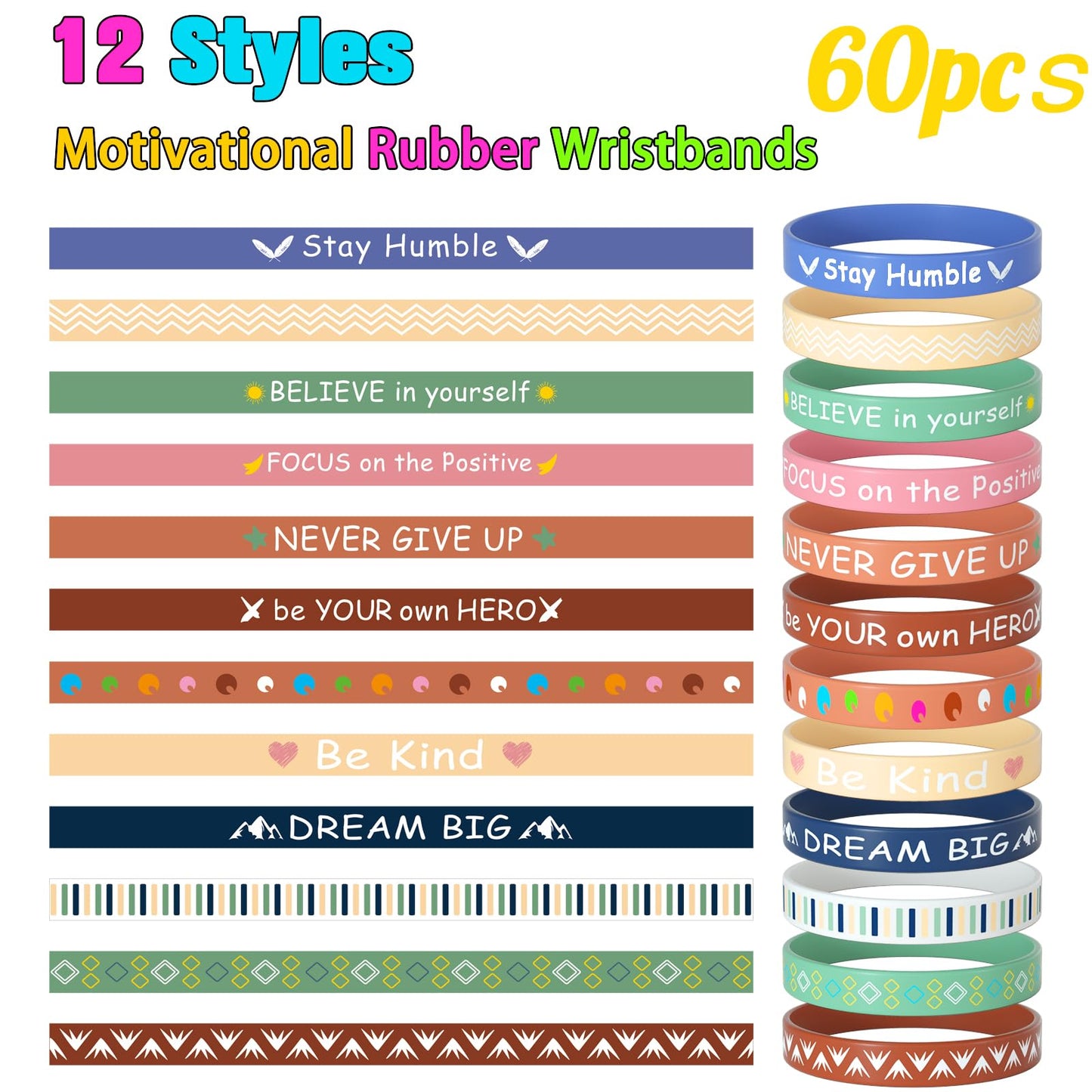 Morcheiong 60 Pieces Motivational Rubber Wristbands Inspirational Quote Silicone Bands Unisex Style- 12 Designs