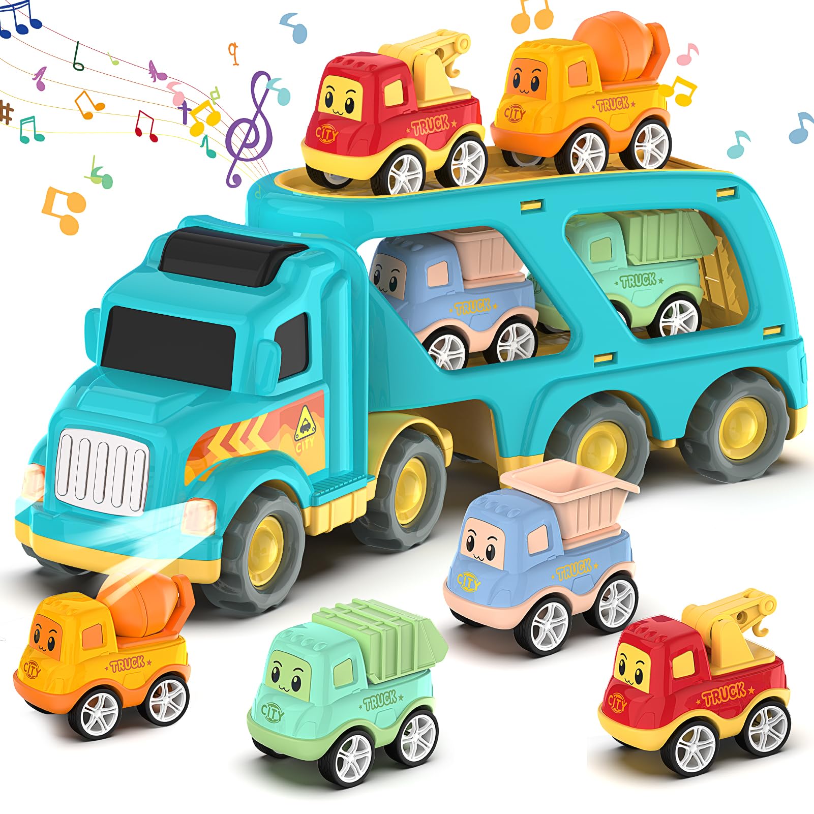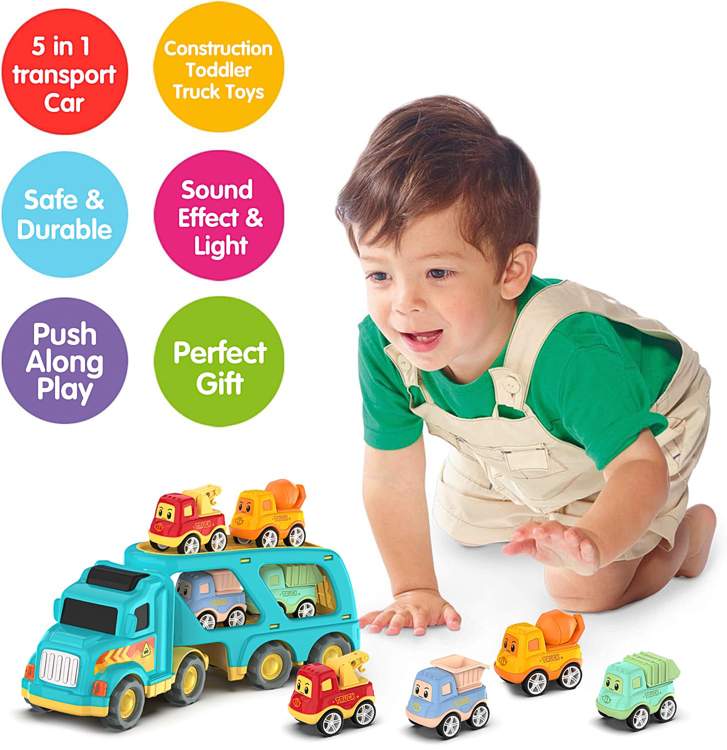 Moritakk Construction Toddler Truck Toys for Boys Girls Age 3 4 5 6 7 Years Old,5 in 1 Carrier Transport City Vehicles Toys,Car
