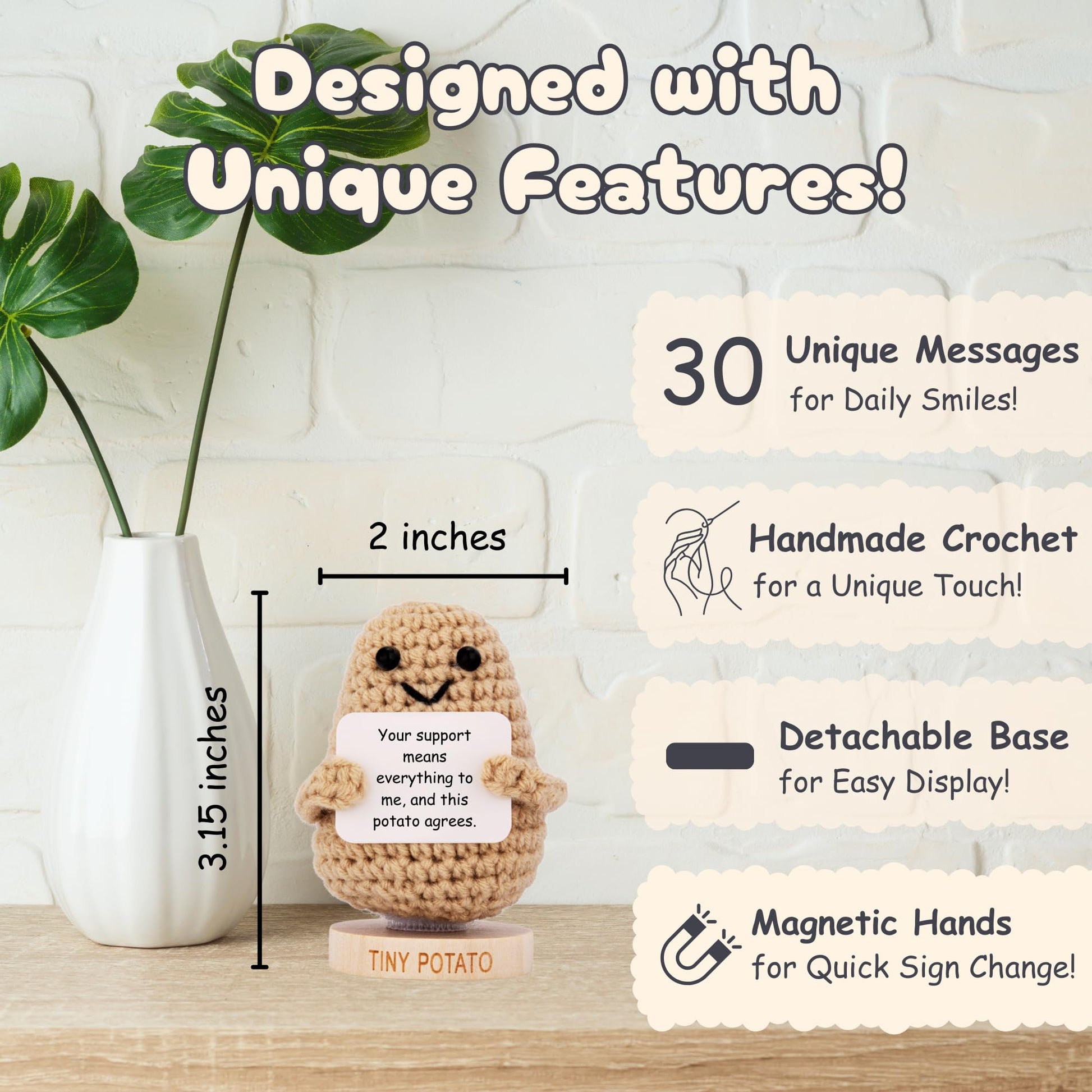 Looking for a funny yet meaningful mother in law mothers day gift that shell actually love and use every day, this cute crochet potato is the perfect mothers day gifts for mother in law option, offering a mix of joy, humor, and sentiment, its one of those unique mother in law gifts that stands out thanks to its sweet smile and 30 swappable signs with funny or heartfelt messages, whether you need mothers day gift for mother in law ideas or just great gifts for mother in law in general, this emotional support potato has you covered, handmade with care and full of personality, its a best mother-in-law gifts choice for anyone who loves thoughtful gestures with a side of cute humor, ideal for mothers day gifts for mom in law or even as adorable mothers day gifts from daughter in law that bring a smile to her face every morning, its also perfect for mother in law birthday gifts or just a way to say you care This crochet potato figurine comes ready to gift in a colorful box that makes your gesture even more special, no extra wrapping needed, designed as a thoughtful mother in law mothers day card alternative with long-lasting display appeal, its a fun present that speaks louder than words, for daughters-in-law, this is one of the top mother in law gifts from daughter in law with its lighthearted charm and empowering messages, for sons-in-law too, its a great pick among mothers day gifts from son in law that show appreciation with humor and heart, from funny mother in law gifts to best mother in law gifts and beyond, this tiny potato makes everyday gifting more joyful, making it a perfect mothers day gift from son in law, a small yet powerful mothers day gift from daughter in law, or even a great choice among mothers day gifts for mom from daughter in law who want something sweet and different