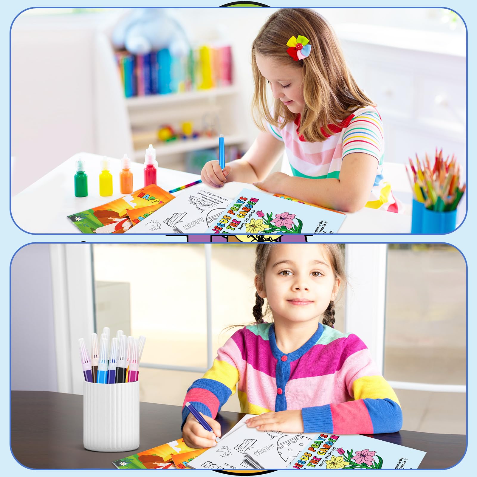 Features: Ideal Easter gift: The Easter stories in the cards are rich and interesting, and the card designs are novel, these Jesus story coloring crafts are in line with the Easter party, they are ideal gifts for others on Easter. DIY fun: You can DIY these Christian Easter coloring cards with family or friends, coloring is a very interesting and relaxing thing, which can help stimulate interest and cultivate attention, imagination and practical ability. Specifications: Material: cardboard Color: multicolor Size: as shown in the figure Package includes: 30 x Easter story coloring cards 48 x Watercolor pencils Notes: Manual measurement, please allow slight errors on size. The color may exist a slight difference due to different screen displays.