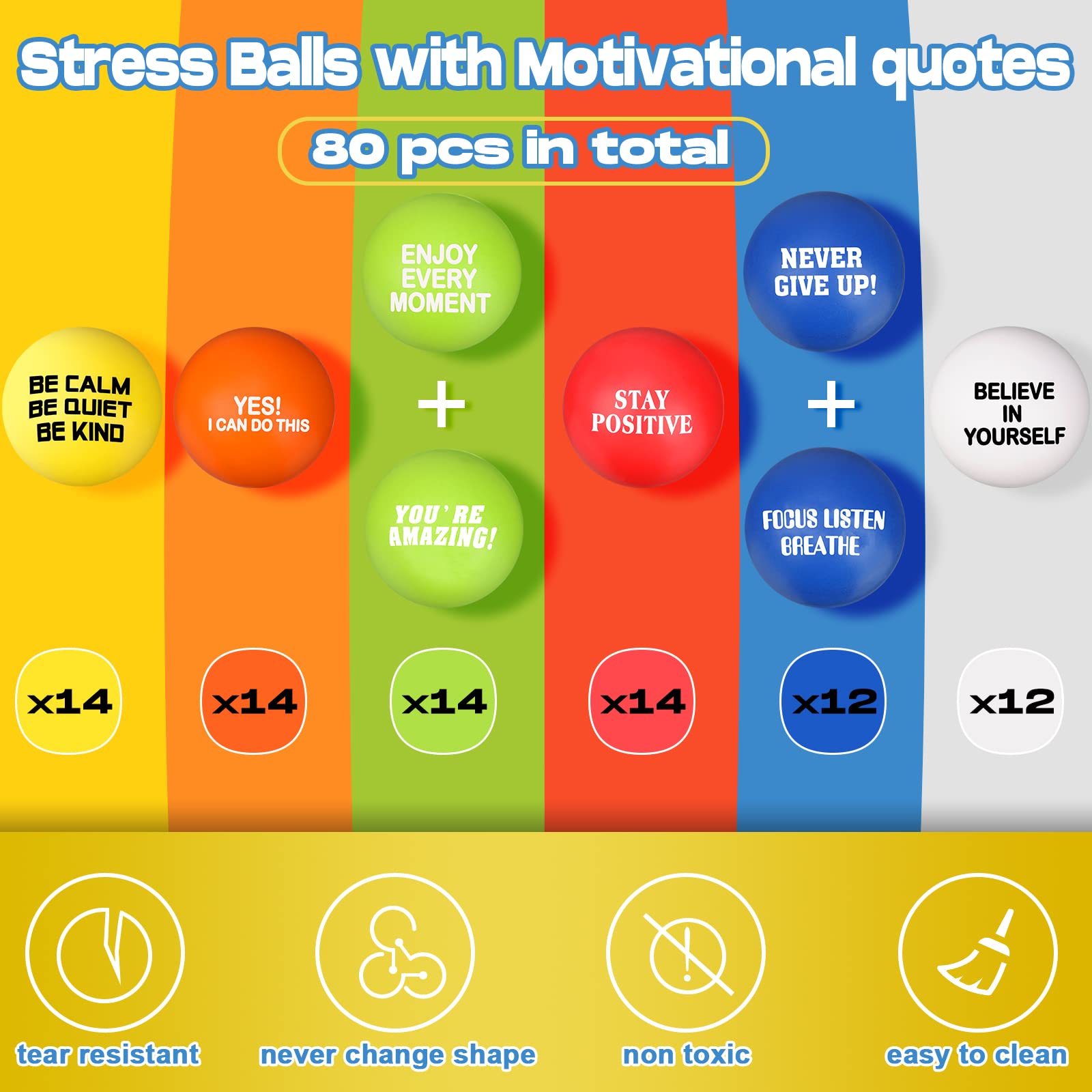 Motivational Stress Balls Colorful Small Foam Balls Anxiety Relief Toys Relieve Inspire Hand Exercise Toys Funny Stress Relief Gifts For Adults Teams Motivating Encouraging(80 Pcs,Positive)