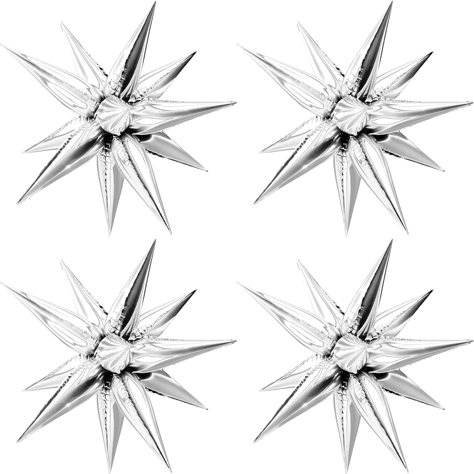 Moukiween 50 Pcs Explosion Star Foil Balloons- 12 Point Star Balloons,Silver Starburst Cone Mylar Balloons Spike Balloons For Party Supplies Christmas Birthday Wedding Baby Shower Photo Booth