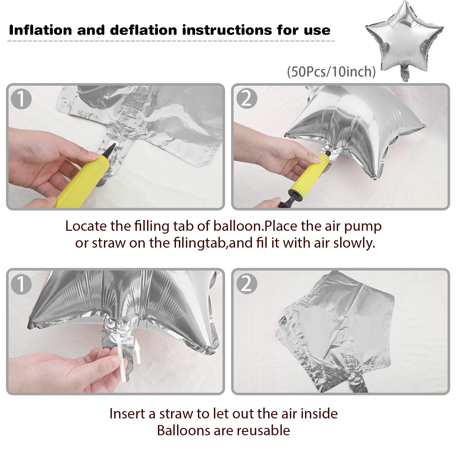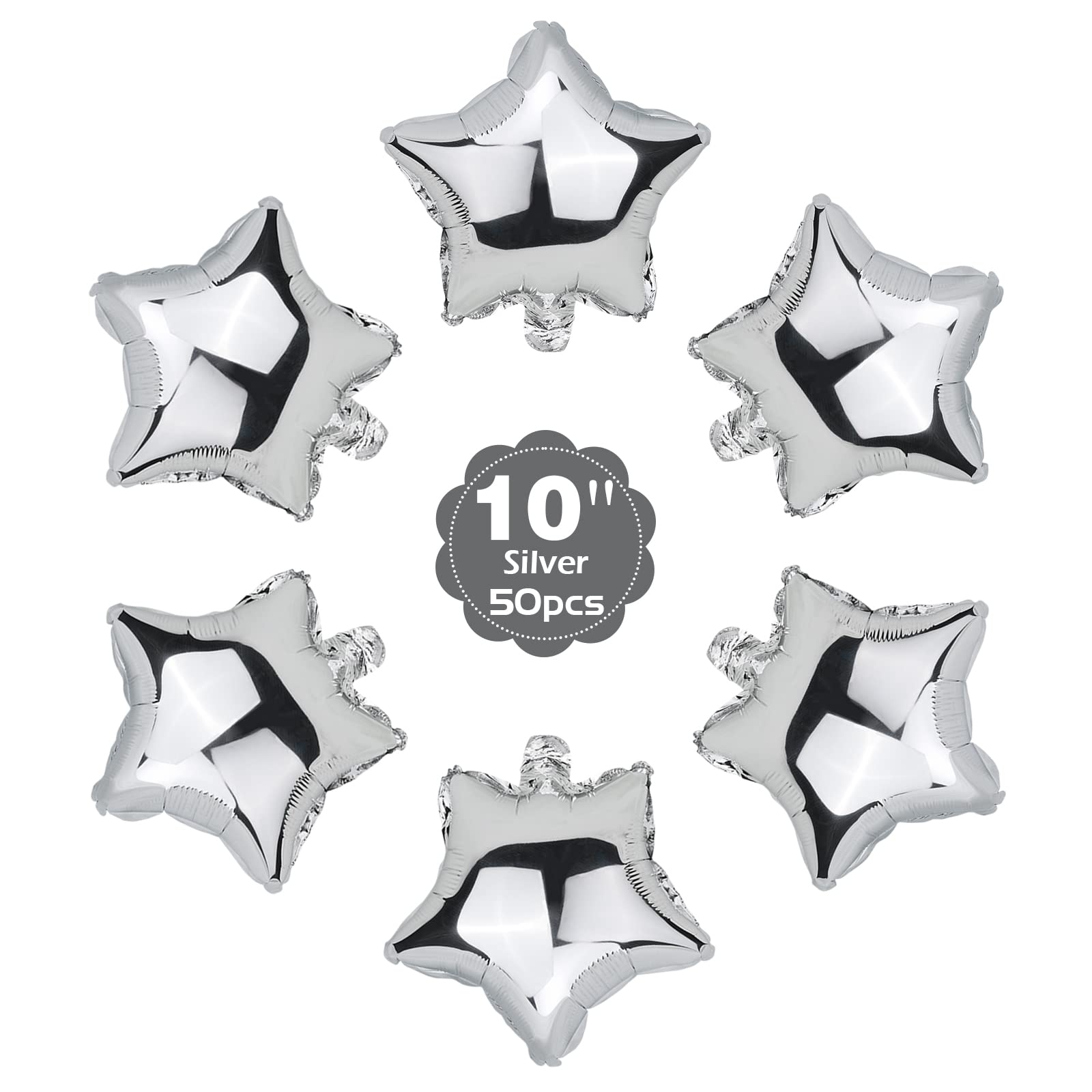 - Q: How many balloons are included in the package? A: Each package contains 50 pieces of 10 inch silver star foil balloons, providing plenty of decorations for your party or event.