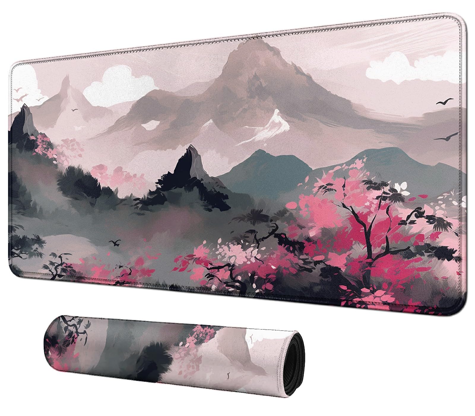 Mountains With Pink Flowers For Mtg & Tcg Playmat Mouse Pad,Bfdhgqzc 24'' X 14'' Game Mat For Mtg/Rpg/Ccg Trading Card Game Play