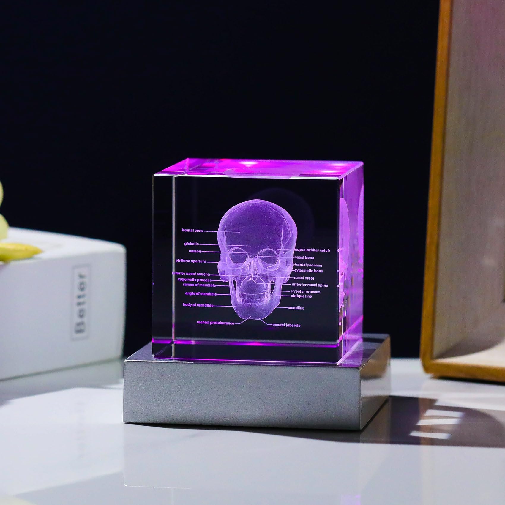 Movdyka 3D Crystal Human Skull Skeleton Model Graduation Gifts For Medical Students, Laser Etched Skull Decor Lamp Figurine Paperweight Science Biology Doctor Gift For Him Her