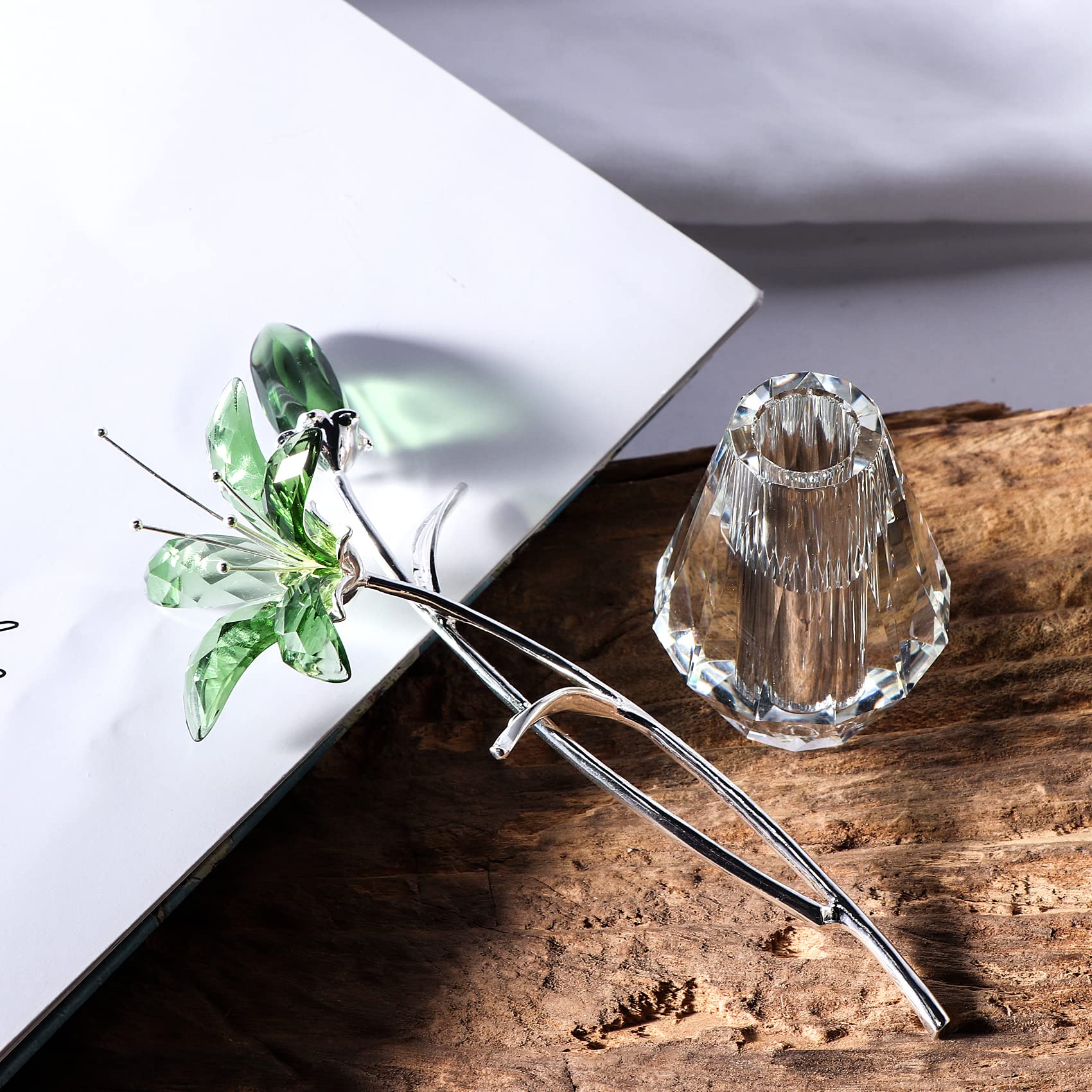 Lily Flower Language:Elegance, Purity, Smoothness And A Hundred Years Of Harmony, Symbolizing A Pure And Beautiful Heart. Great For Arrangement Crystal Lily Flower Year-Round Home Décor Each Beautiful Decorative Keepsake Can Be Enjoyed In Your Living Room, Kitchen, Dining Room, Office, Or Anywhere You Want A Touch Of Class. | Egant Design: This Timeless Design Depicts A Lily Flower, A Symbol Of Prosperity And Abundance. It Will Add Color And Sparkle To Any Interior, Especially When The Sun Shines Through The Figurine. Elegantly Displayed In A Faceted Clear Crystal Vase, The Flower Shines In Crystal. | Specification: Crystal Flowers Are Made From K9 Crystal Glass Metal Long Stem. Size: Total 5.9 Inch, Flower Stem Size: 5.8 * 2.5 Inch, Crystal Vase:2.2 * 1.6 Inch, Nw: 142G/Set. | Special Gifts For Woman: This Crystal Lily Flower Is A Perfect Gift For Girlfriend, Wife, Sisters, Mom, Aunt. They Will Be Happy To Get This Exquisite Present On Birthday, Valentine'S Day, Mother'S Day, Thanksgiving, Christmas,Anniversary. | After-Sales Service: Packaging Includes A Gift Box, A K9 Crystal Lily Flower, Crystal Vase, Gift Card And A Wiping Cloth. If Anything Goes Wrong With The Product Or You Have Any Questions, Please Feel Free To Contact Us, We Will Reply Within 24 Hours And Do Our Best To Solve Your Problems Quickly.