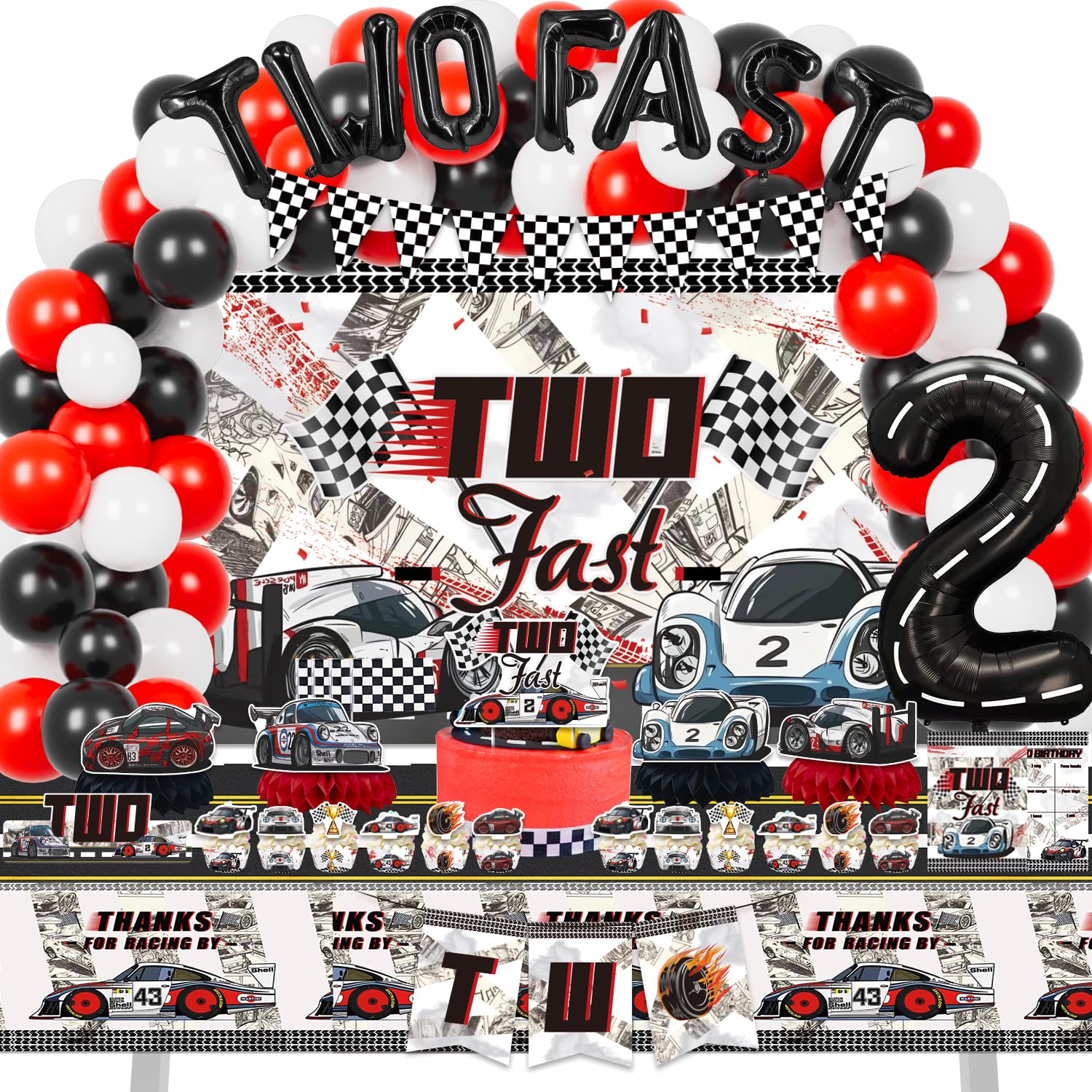Mpanwen Two Fast Birthday Decorations For Boys, 153 Pcs Race Car Birthday Party Supplies - Backdrop, Toppers, Cupcakes Wrappers,