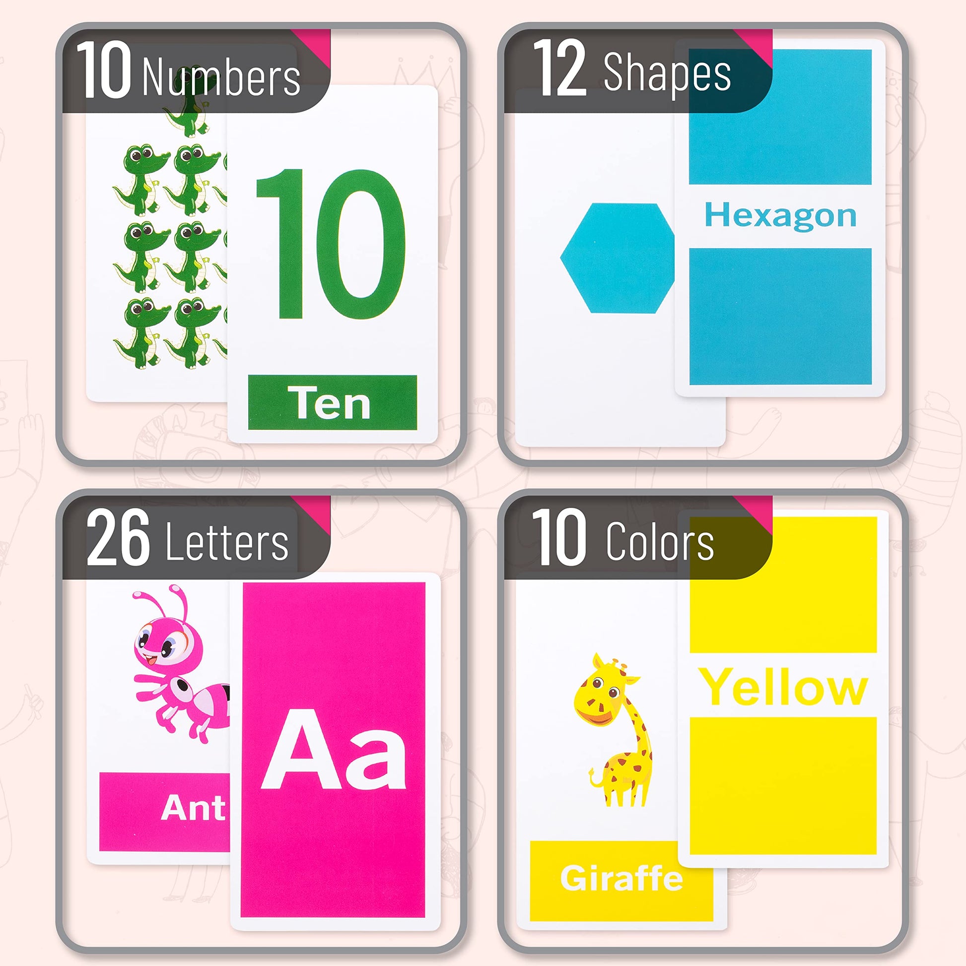 - Q: How are the flash cards beneficial for my child's development? A: These flash cards promote cognitive learning by enhancing skills such as letter recognition, counting, pattern recognition, and critical thinking, while also stimulating visual development through their bright colors and illustrations.