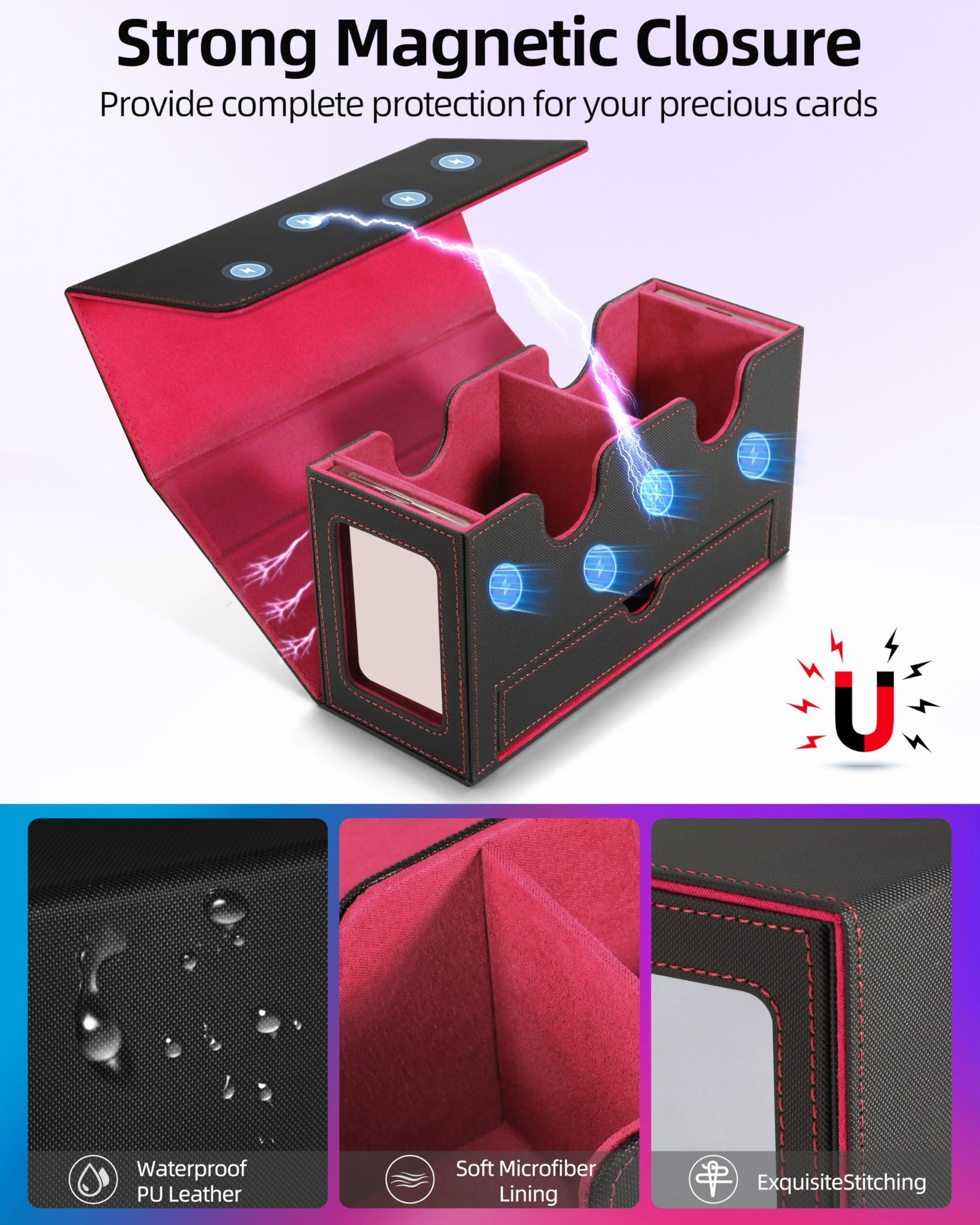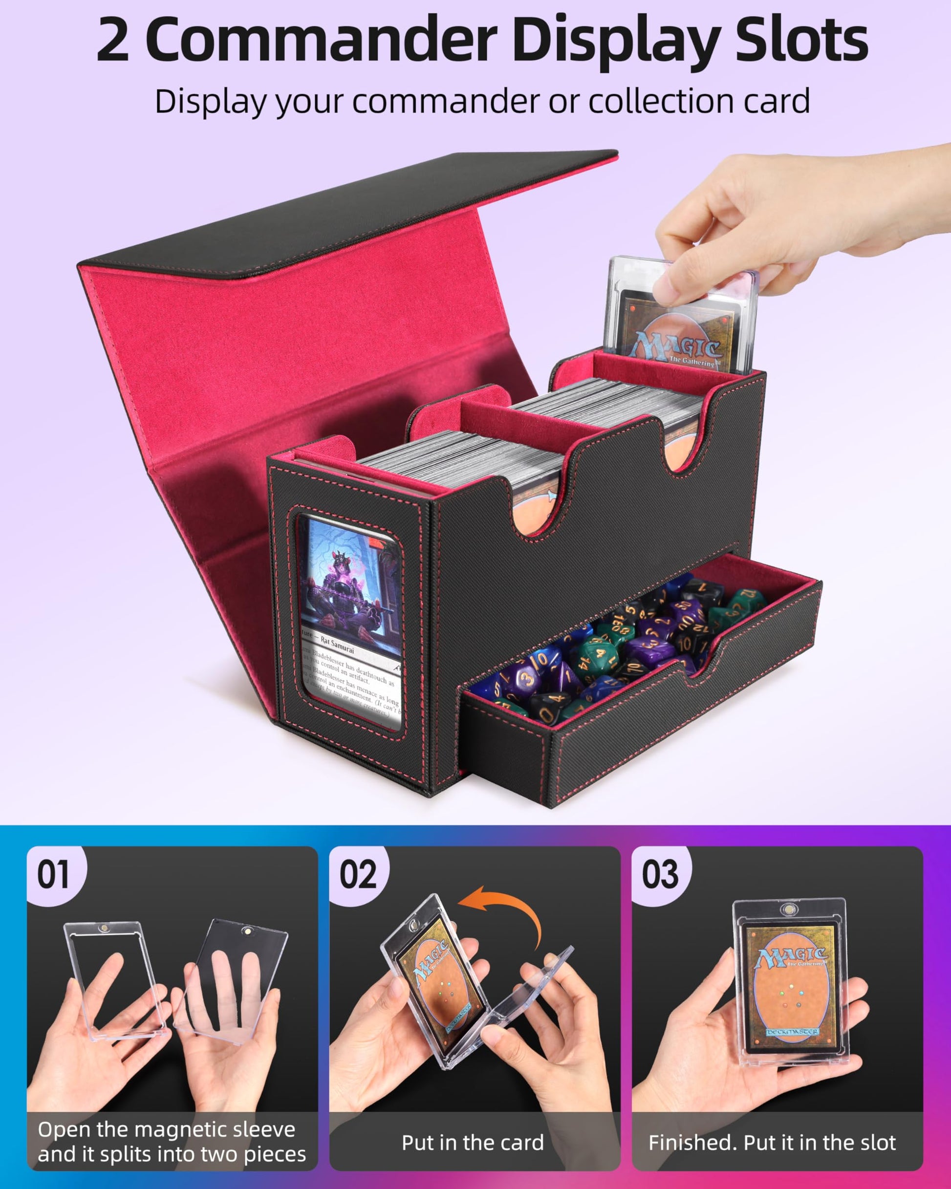 MTG Deck Box, MTG Commander Card Deck Box with Commander Display, Fits 320+ Single Sleeved, Double Card Storage Box with Dice Tr