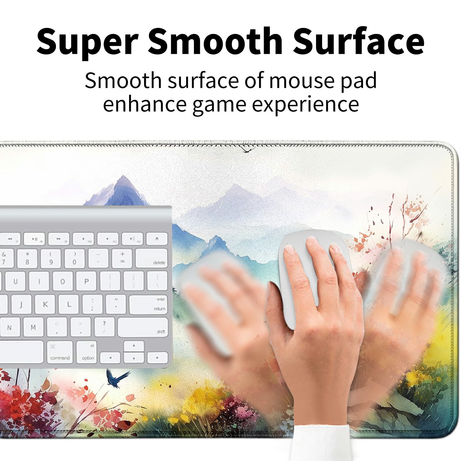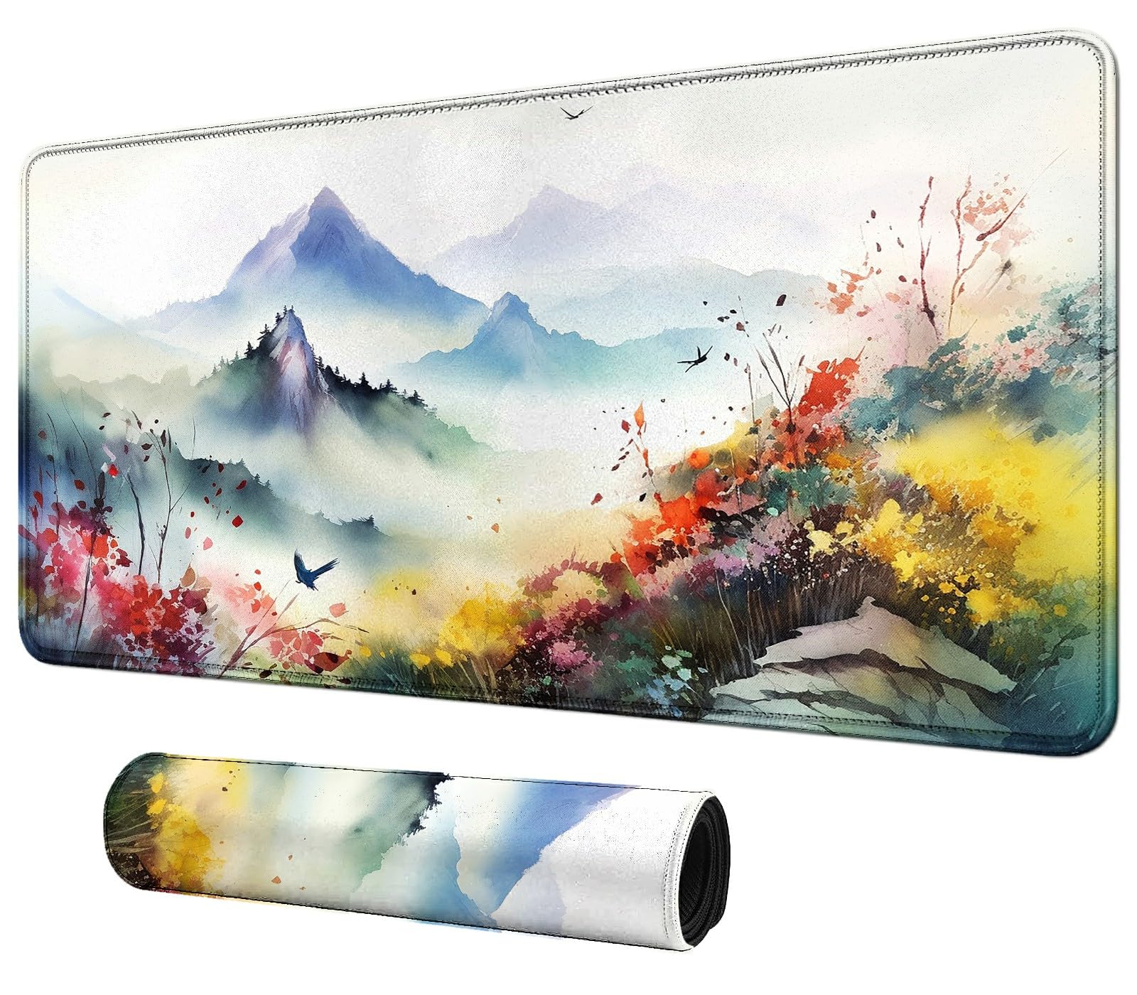 MTG & TCG Playmat, 24'' x 14'' Game Mat for Table, Perfect for Card Games, Watercolor Mountains Flowers