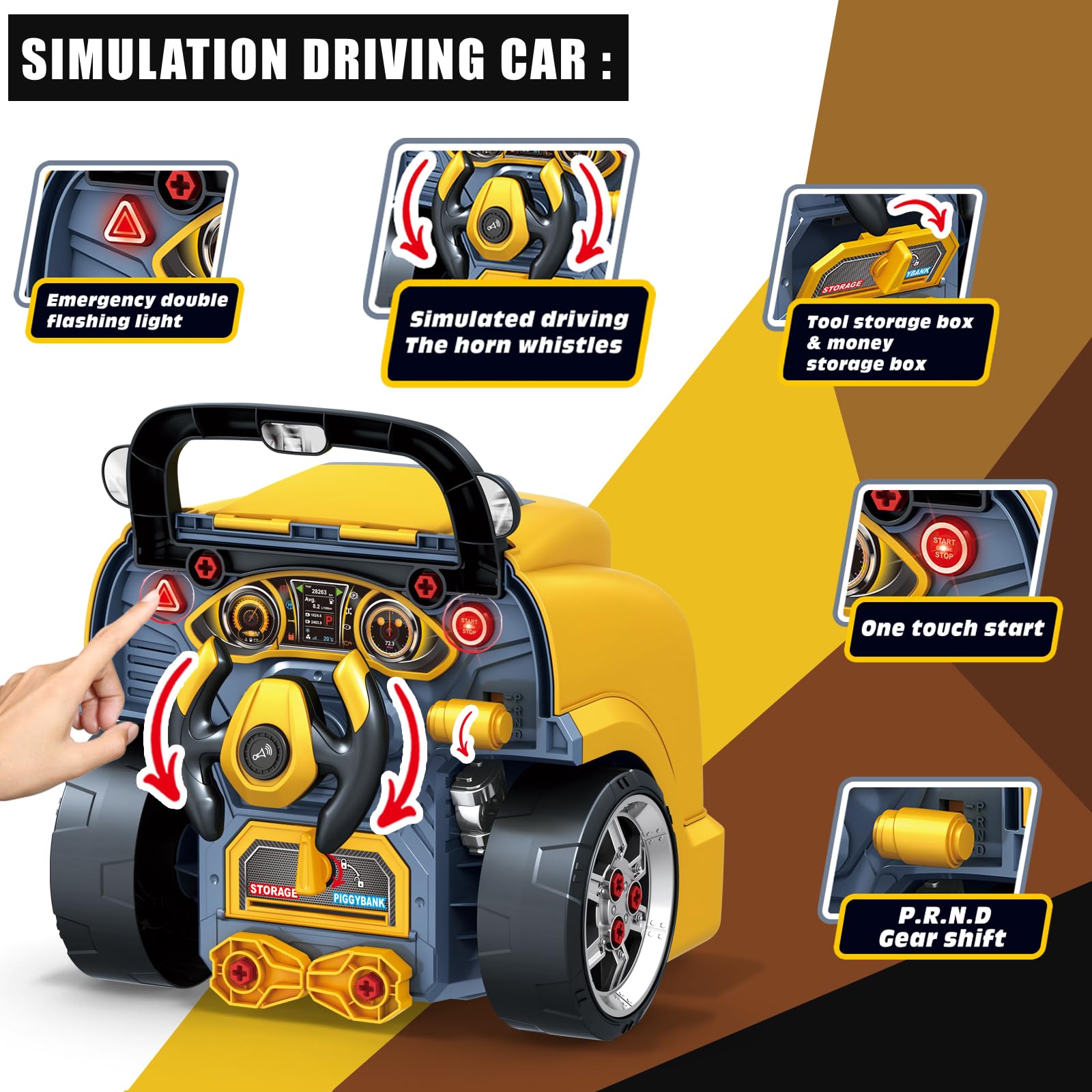 - Q: What features does the toy include to enhance the play experience? A: This toy features realistic lights and sounds, a removable engine, and various functions like one-touch start, hazard warning lights, and gear selections, allowing kids to simulate real driving and engage in hands-on learning.