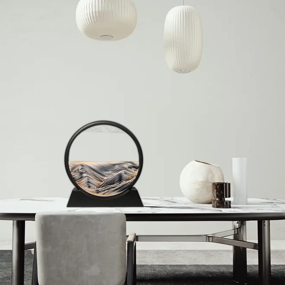 Muyan Moving Sand Art Picture Sandscapes in Motion Round Glass 3D Deep Sea Art for mature-themed Kid Large Desktop Toys (Black 7 Inch)