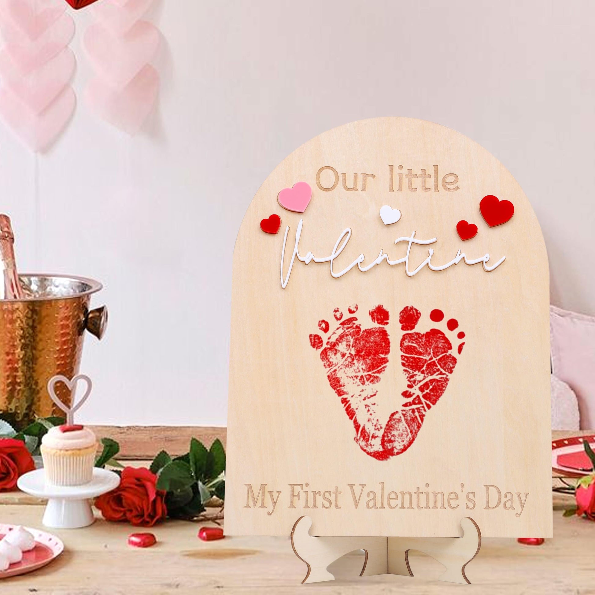 View compareMy First Valentine Footprint Wood Board - Our Little Valentine Wood Sign Milestone, Baby Footprint Wood Craft, First Valentine K