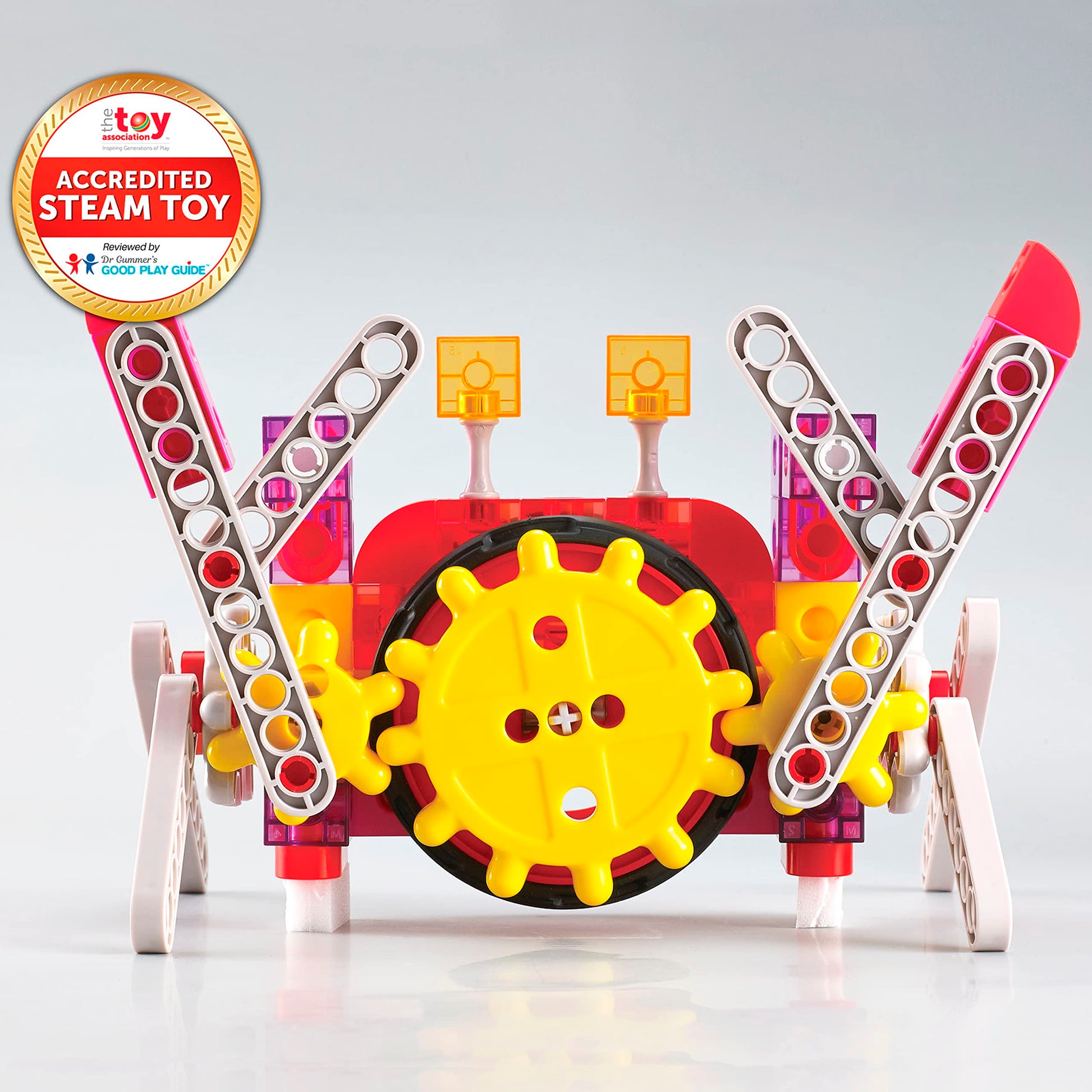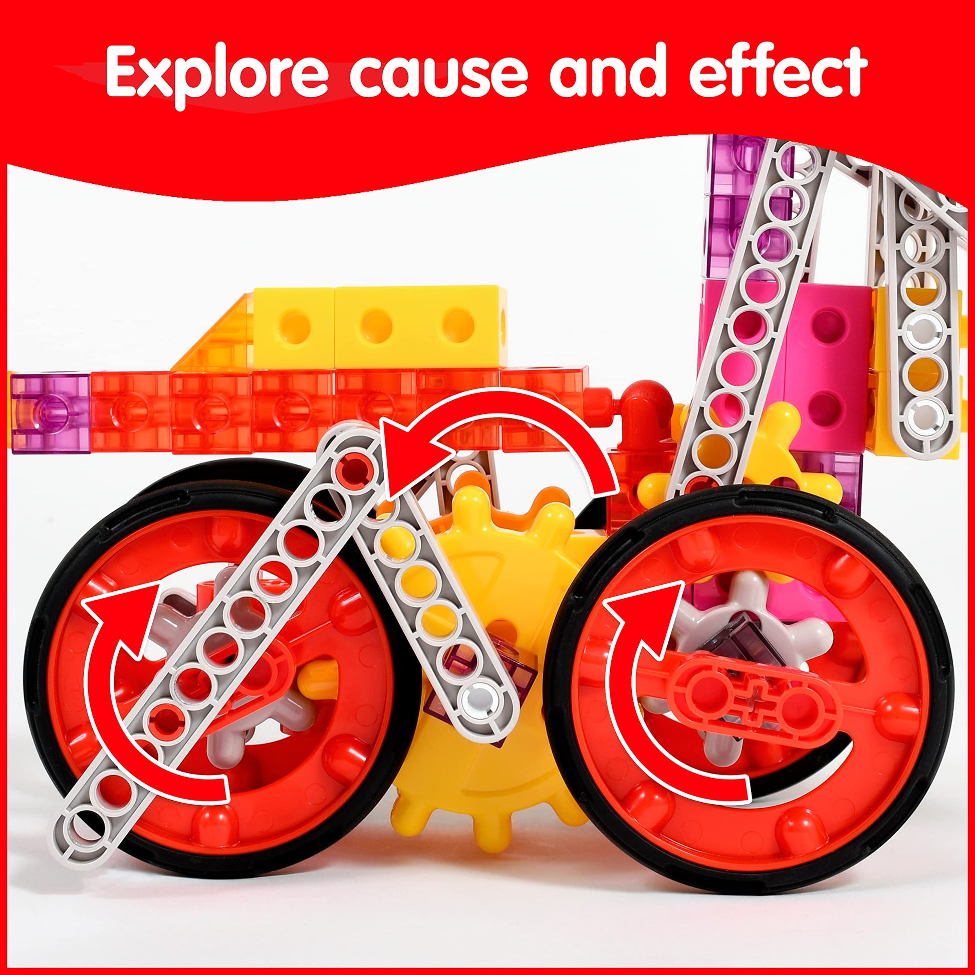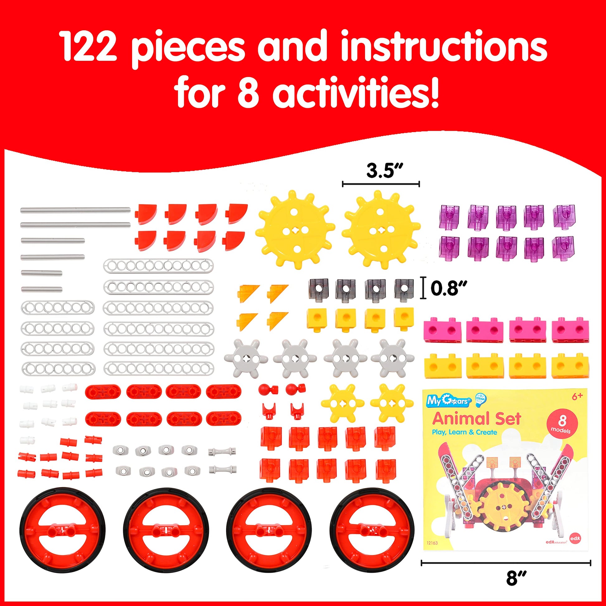 This set features instructions for dynamic animal and machine models. Follow our activity guide or experiment with your own engineering creations! Use these gear models to teach children that actions and design affect outcomes. Develop curiosity attention to detail and intentional play. The pieces in this kit contain more raw material than some other gear products on the market. The components are durable. And the assembled models are sturdy enough for playtime. This gear toy set is compatible with 2 cm Linking Cubes (large online retailer # B014V1D4R4). Extend your collection with these twisting turning models. For ages 6+.