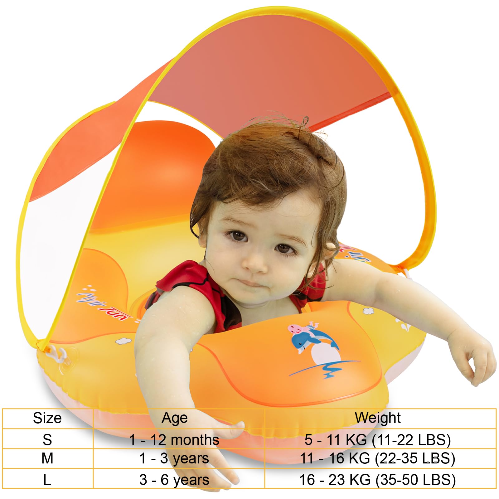 Myir Jun Baby Float With Canopy, Inflatable Pool Float Toddler Float Children Float For Pool Baby Swim Trainer Toddler Swim Floa