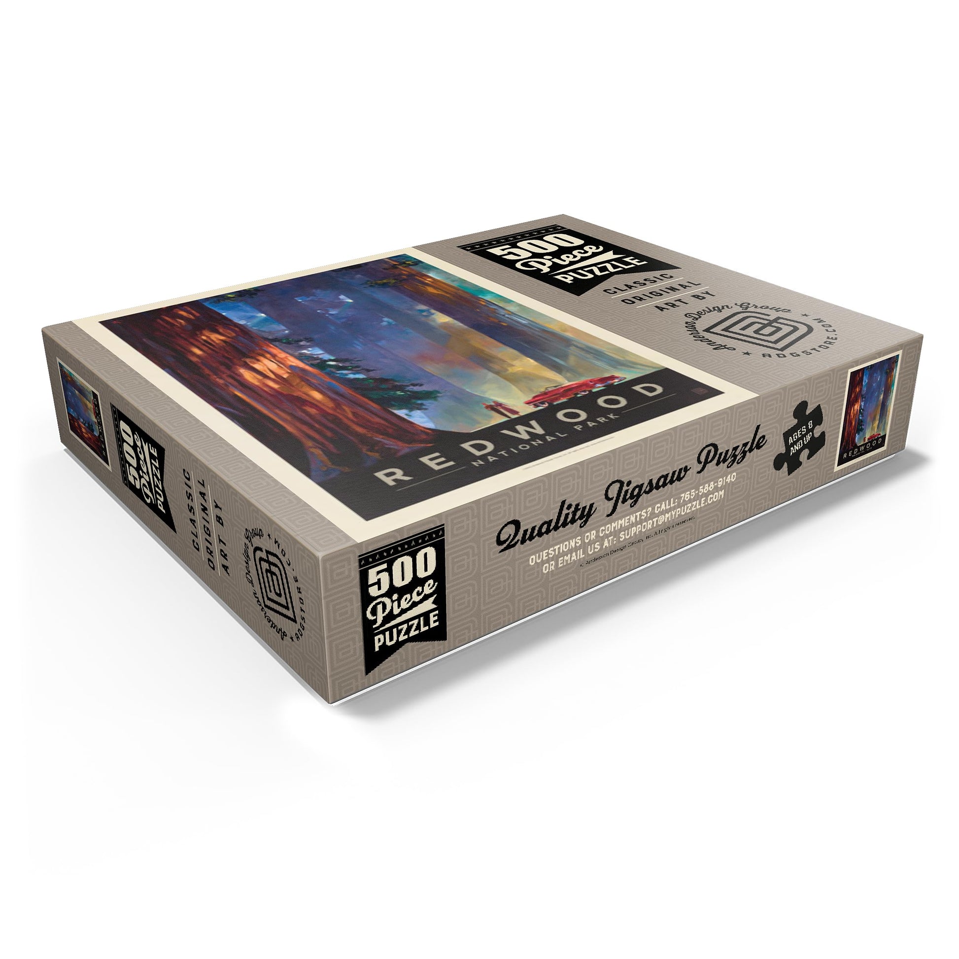 MyPuzzle Redwood National Park: Among The Giants, Vintage Poster - Premium 500 Piece Jigsaw Puzzle for Adults