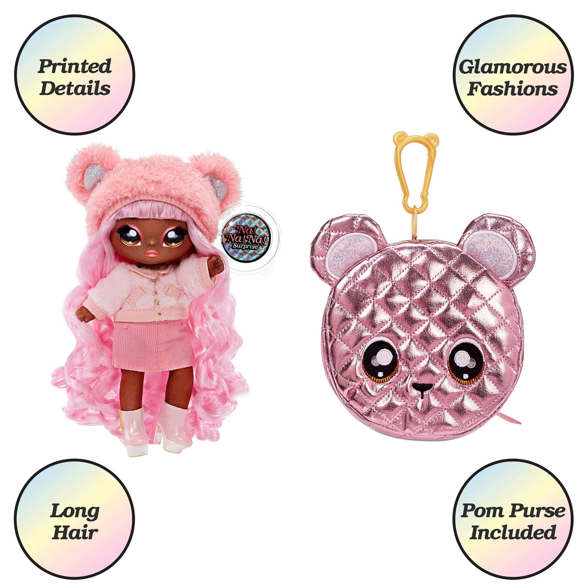Na! Na! Na! Surprise Glam Series Cali Grizzly Fashion Doll And Metallic Bear Purse, Pink Hair, Cute Fuzzy Hat Outfit & Accessories, 2-In-1 Kids Gift, Toy For Girls And Boys Ages 5 6 7 8+ Years