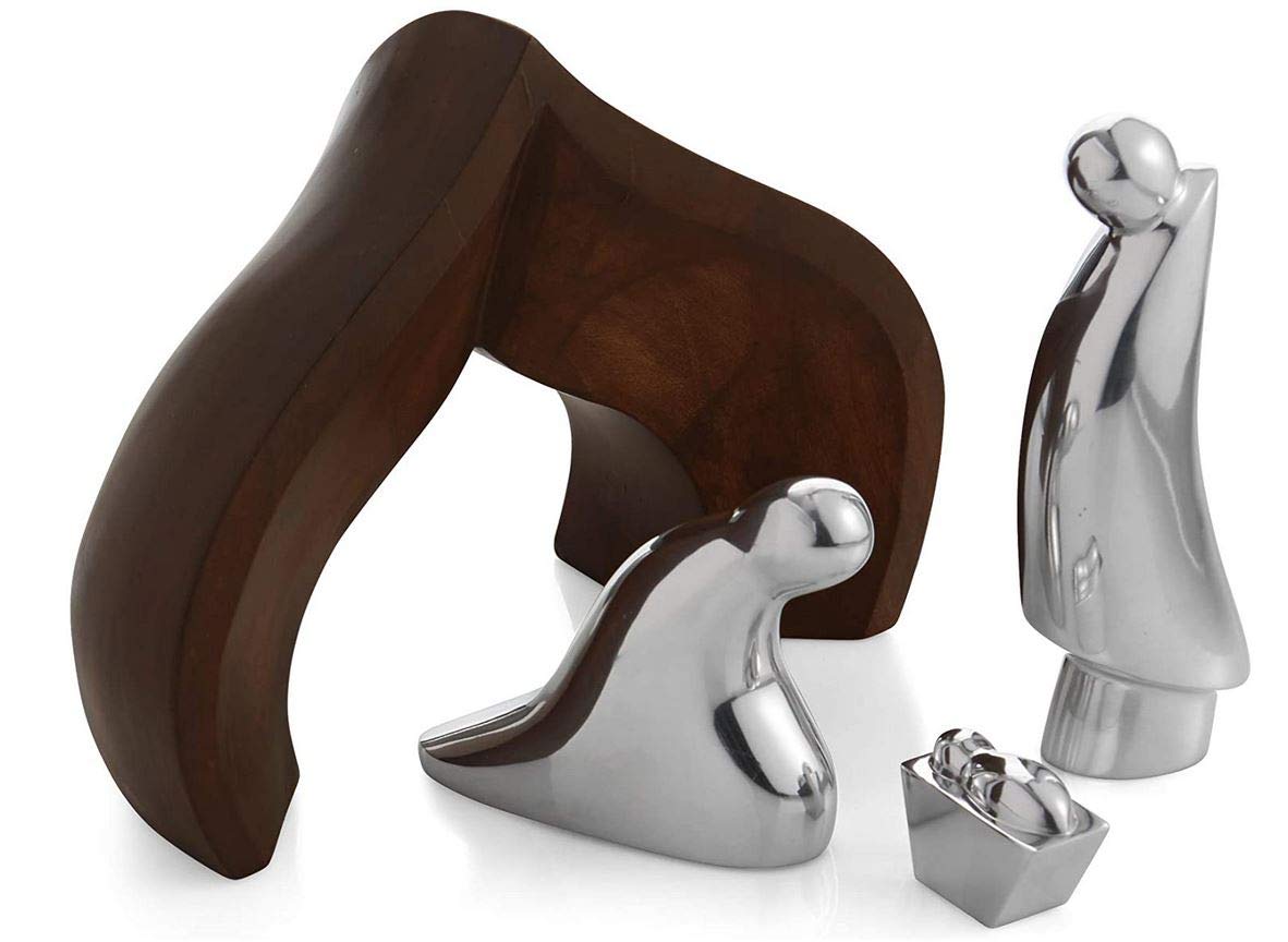 Simple Yet So Emotive, Our Handcrafted Nativity Scene Casts Its Magic On Gift Recipients. Mary Kneeling And Joseph Standing, Heads Bowed, And Baby Jesus Lying On A Rustic Crib, Are Sand-Cast Of Our Enduring Metal Alloy And Polished To A Reflective Gleam. The Holy Family Inhabits Their World-Recognized Stance In Front Of A Beautifully Arched Creche Of Carved Wood, Measuring 10 By 8-1/2-Inch . Imagine The Serene Pleasure Of Unwrapping Each Piece For The Christmas Season After Their Being Tucked Away In Storage The Rest Of The Year. Let These Modern Yet Timeless Figurines And Their Evocative Backdrop Grace Your House Or That Of Someone You Love, Year After Year.   Designed By Todd Weber.
