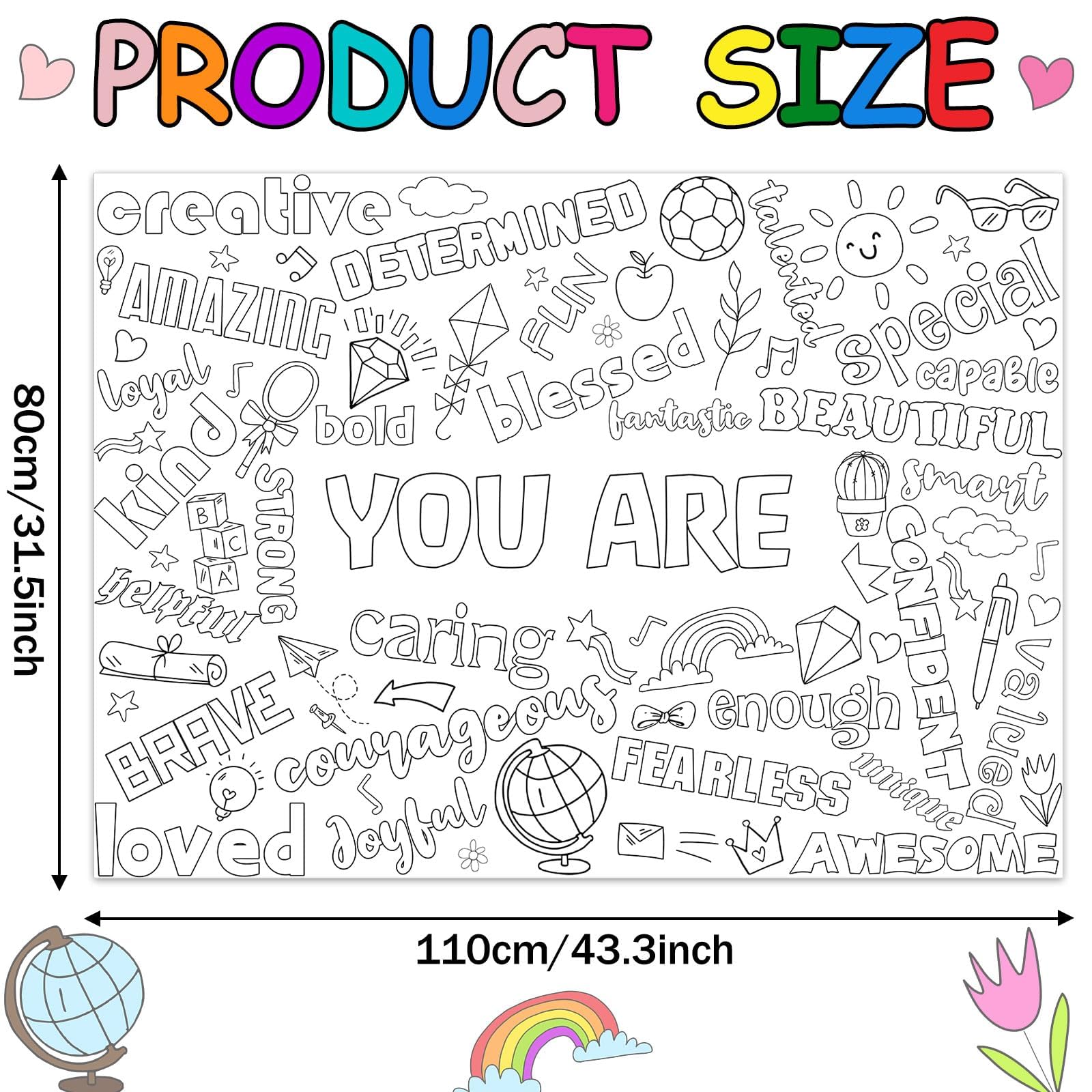 Naozinebi Positive Coloring Poster For Kids Giant You Are Coloring Poster Large Positive Affirmations Coloring Tablecloth Jumbo