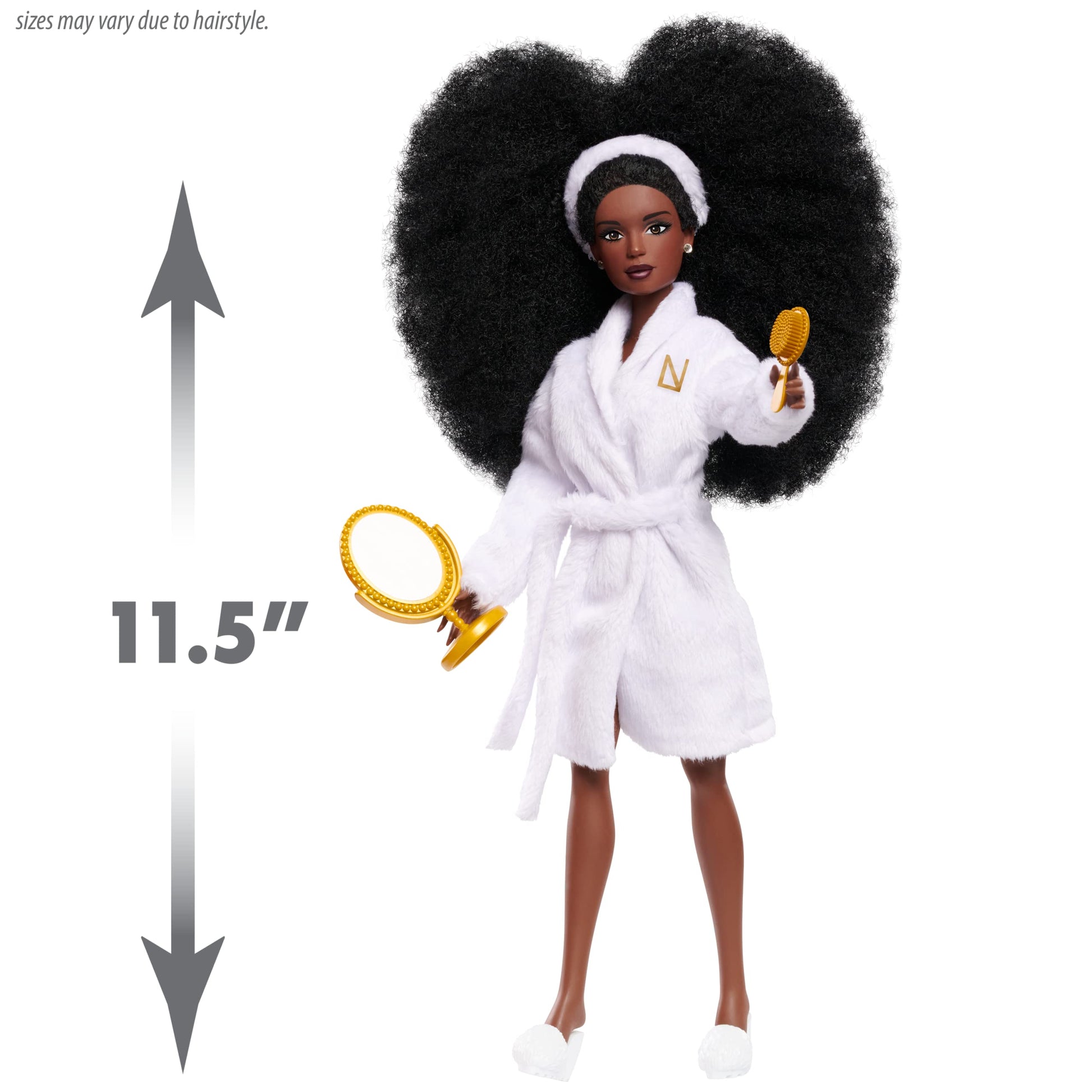 - Q: What is included in the Naturalistas Fashion Pack Wash Day set? A: The Naturalistas Fashion Pack Wash Day set includes a luxurious robe, a matching headband, a mirror, a branded hairbrush, and a pair of white wedge slippers. Please note that the doll is not included.