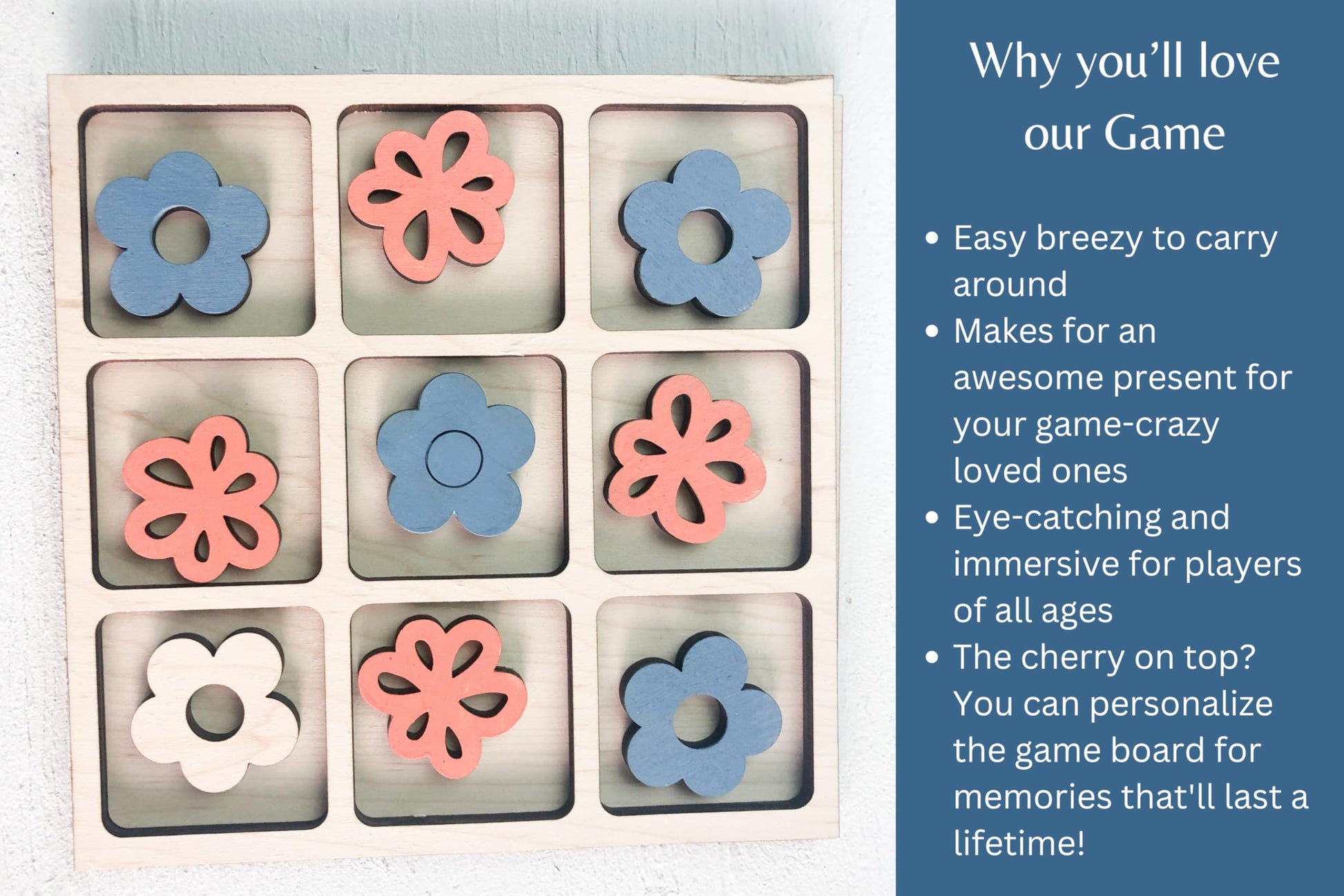 Unleash your child's creativity and strategic thinking with our flower Themed Tic Tac Toe Board Game. This 5x5 inch unfinished wood DIY painting craft kit offers a unique twist on the classic game, featuring wooden flowers instead of the traditional Xs and Os. Perfect for kids who love nature themes, this craft kit not only provides hours of fun but also encourages imaginative play and artistic expression. The sturdy wooden pieces and board ensure durability, making it a great gift for birthdays, holidays, or any special occasion.