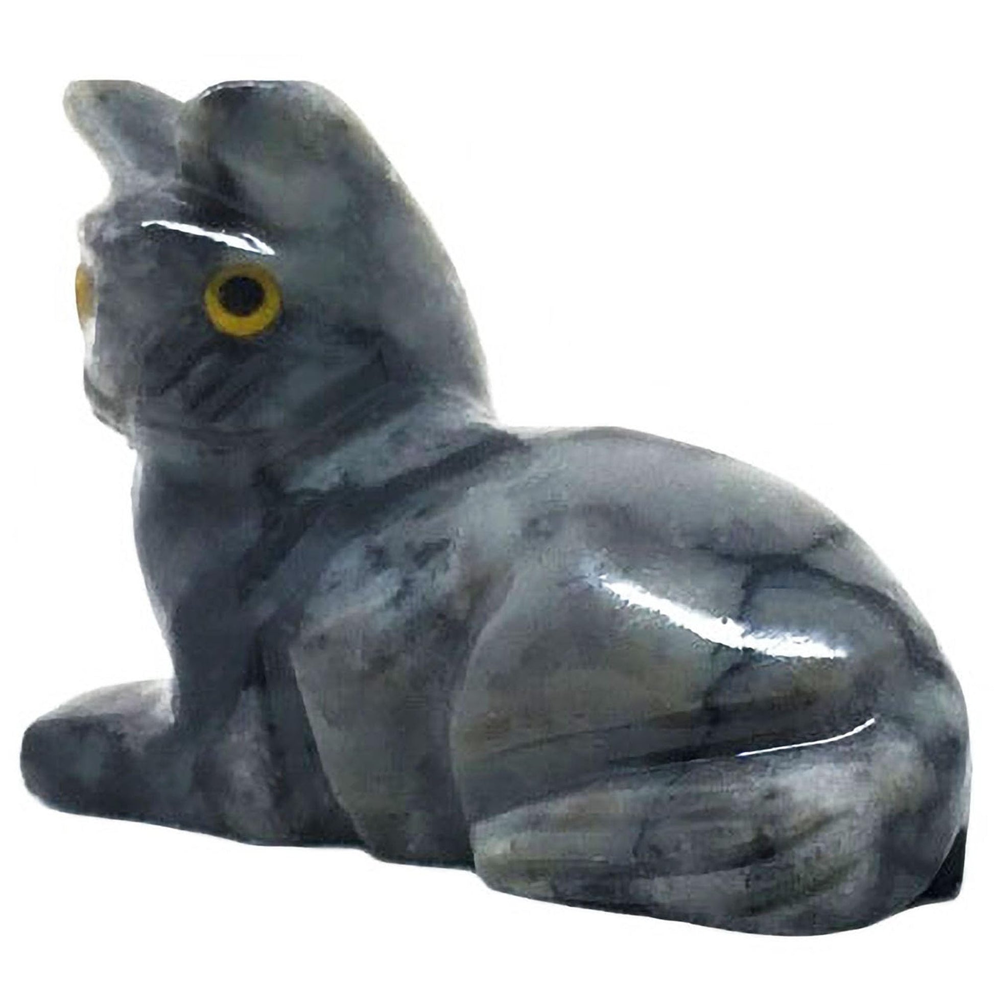 • Q: Is each Cat Laying figurine unique? A: Yes, each Cat Laying figurine is individually hand-carved from natural soapstone, resulting in unique colors and patterns. No two pieces are the same, ensuring that you receive a one-of-a-kind charm.