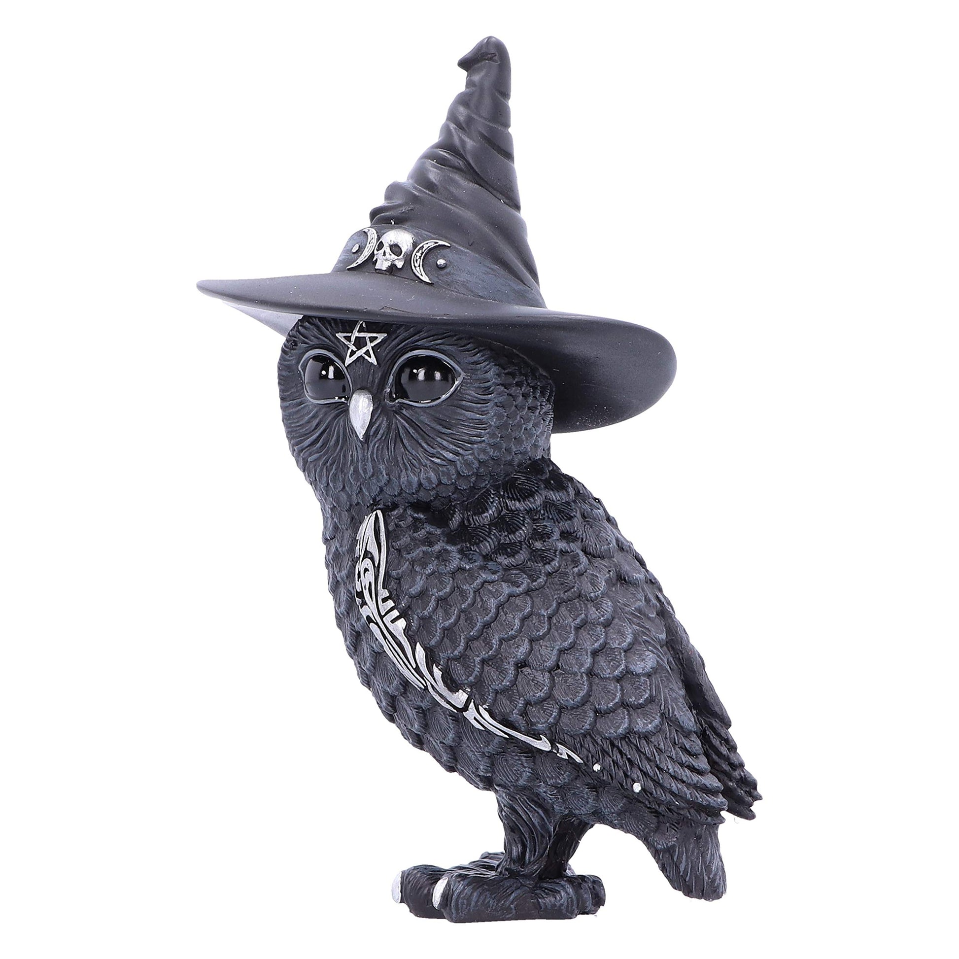 Enchanting Witchy Design: This bewitching owl figurine features a detailed witch's hat adorned with pentagrams, skulls, and moon symbols, adding a mystical touch to your decor. | High-Quality Craftsmanship: Crafted from the finest resin and meticulously hand-painted, this figurine showcases exceptional detail and durability for long-lasting enjoyment. | Occult Decor: Ideal for Halloween or year-round, this occult statue serves as a goth addition to any home. Whether placed on a table or bookshelf, it enhances your pentagram decor with dark allure. | Scarily Adorable: This figure combines cuteness with the mystique of the occult. Its charming yet devilish appearance makes it a welcome addition to your collection of satanic decor. | Cult Cuties: These macabre figurines are the cutest cultists. Cast in high-quality resin and carefully hand-painted, this figurine makes for excellent gothic bookshelf decor or occult gifts.
