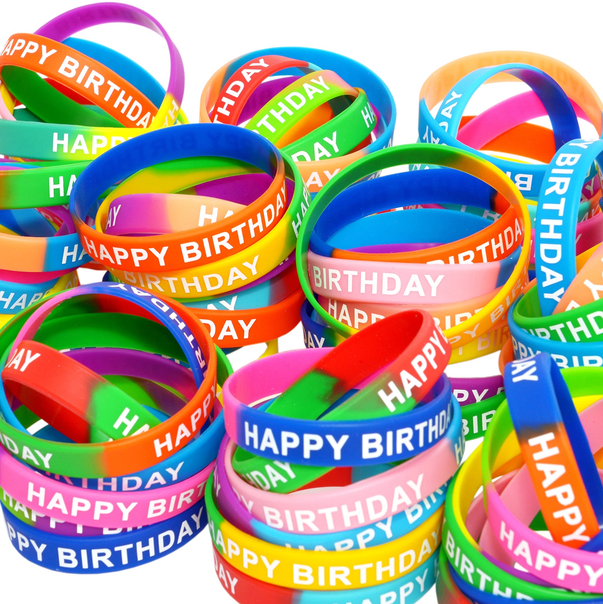 View compareNeureyte 66 Pieces Birthday Rubber Bracelets(22 Styles),Colored Birthday Wristbands for Birthday Party Favors,Stretch Birthday R