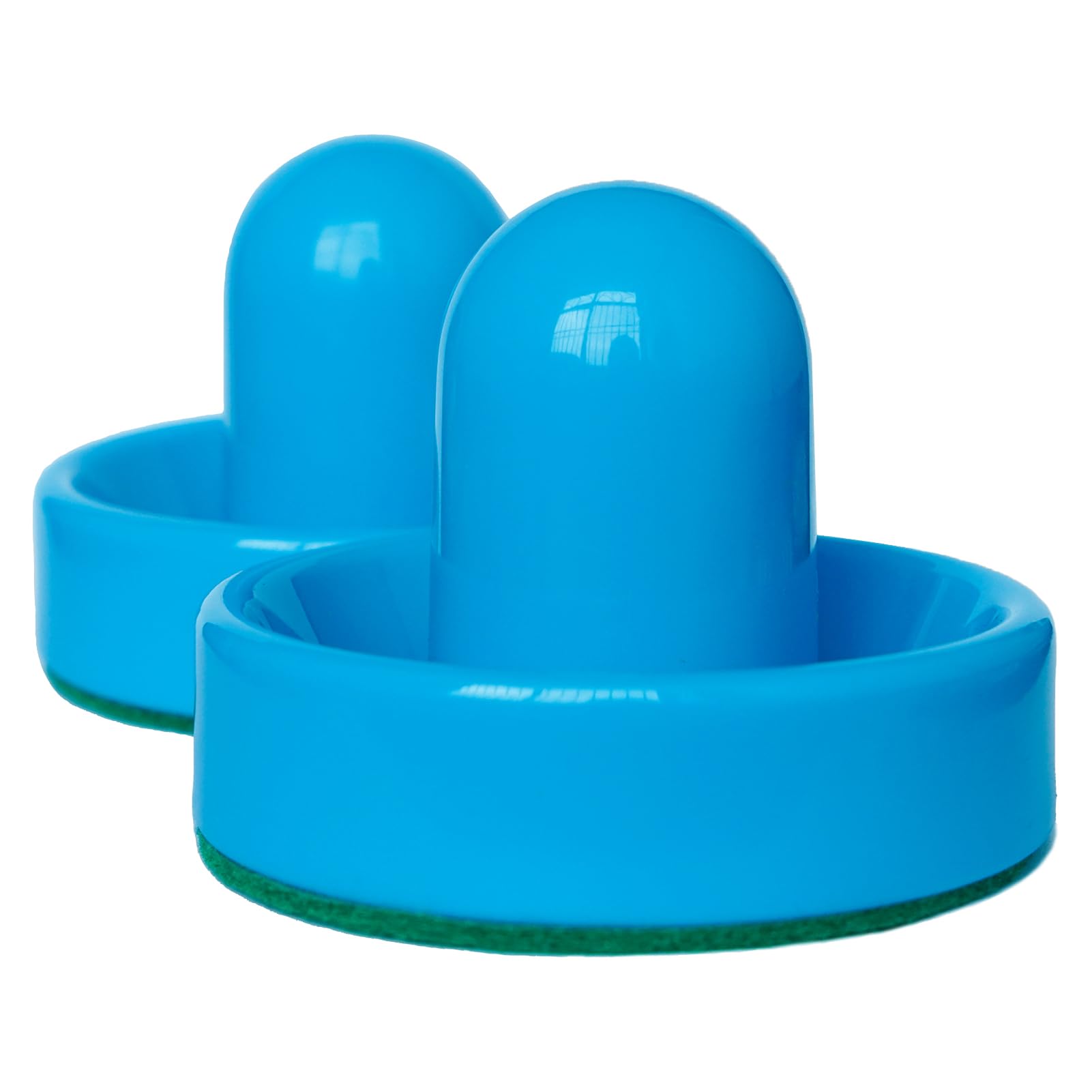 - Q: What is included in the air hockey set? A: The air hockey set includes 1 rechargeable air hockey puck, 2 blue hockey pushers, and 1 USB charging cable for convenience.