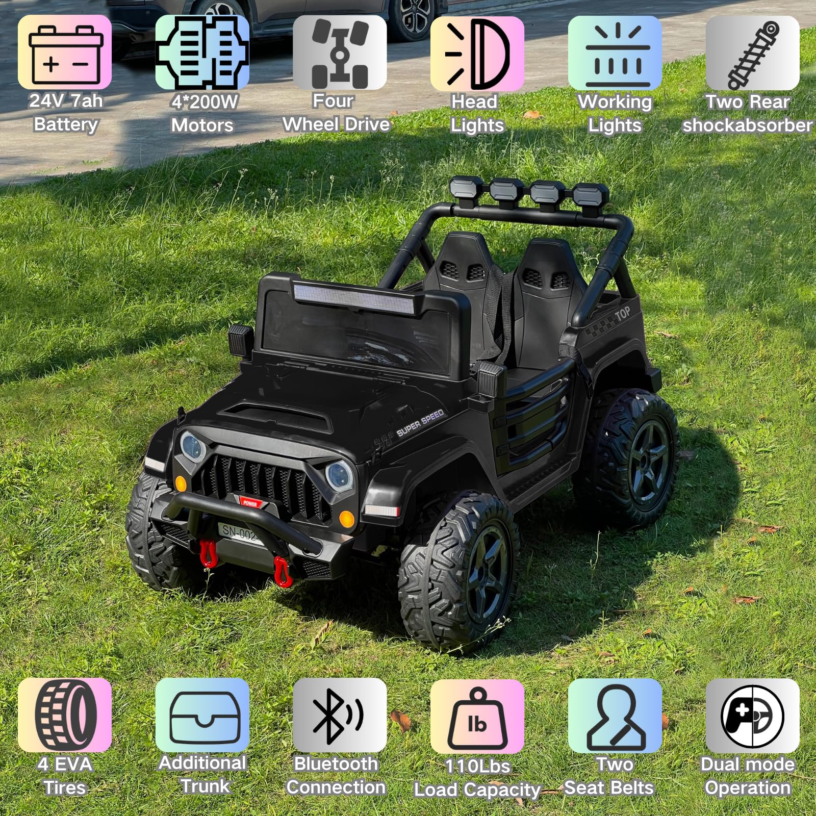 View compareNEWQIDA 24V 2 Seater Ride on Car w/Remote Control 4wd Kids Electric Vehicles Ride on Toys Car, EVA Tires Wheels, 20'' Spacious S