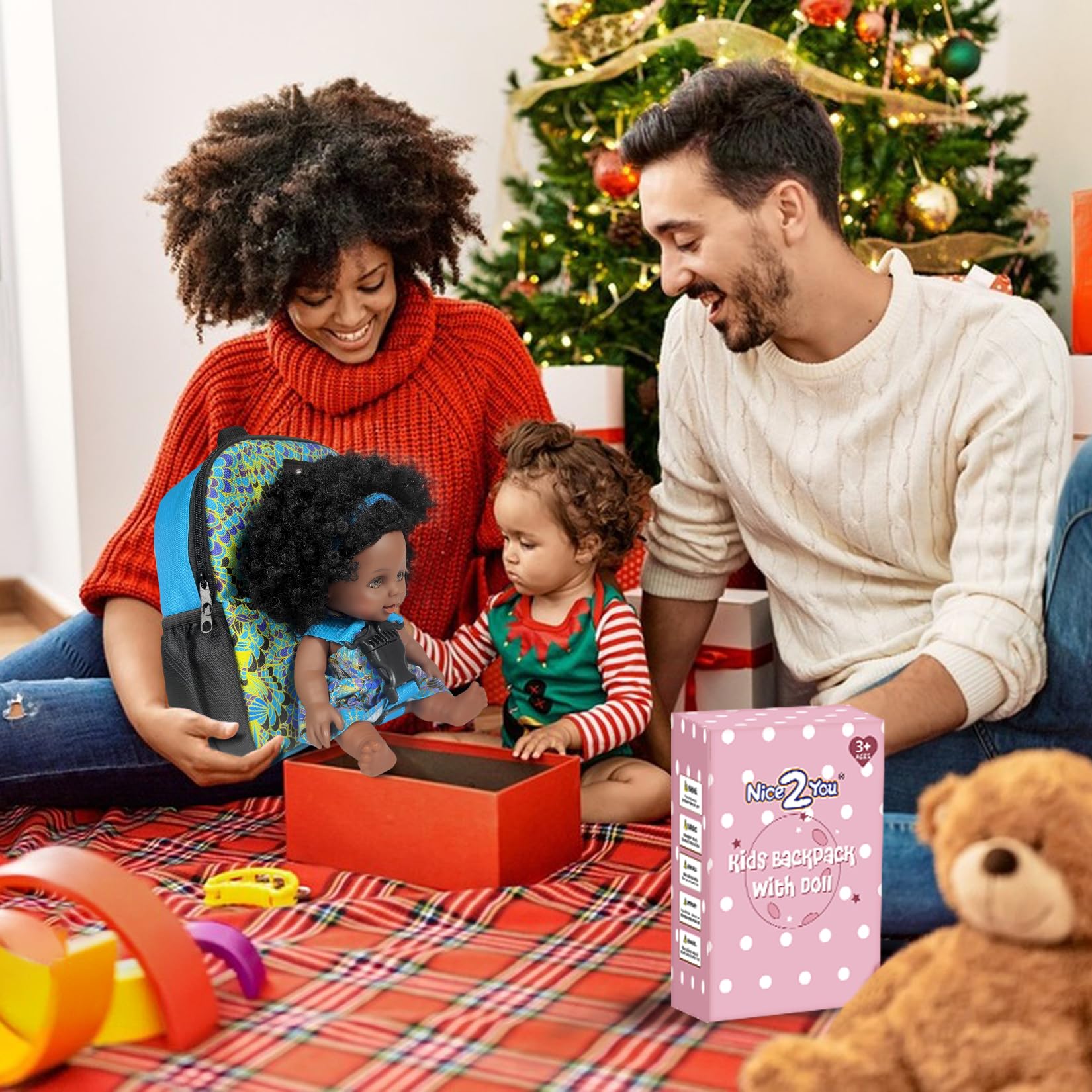 Nice2You Black Baby Doll With Backpack Carrier, 10In American African Doll For Girls Toddlers Aged 2+, Backpack For Baby Doll Accessories Storage, Perfect For 1 2 3 4 5 6 Years Old Kids