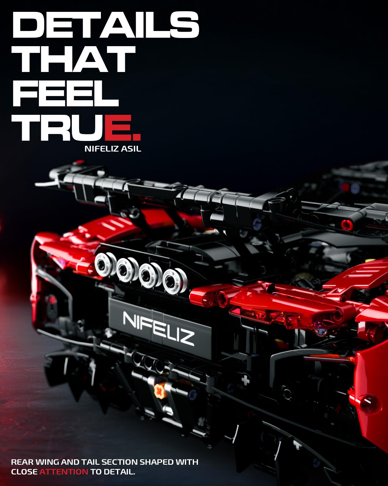- Q: What features does the Nifeliz ASIL Sports Car include? A: It features a detailed V12 engine, functioning butterfly doors, and a seven-speed gearbox for an interactive experience. Each element is designed for realism.