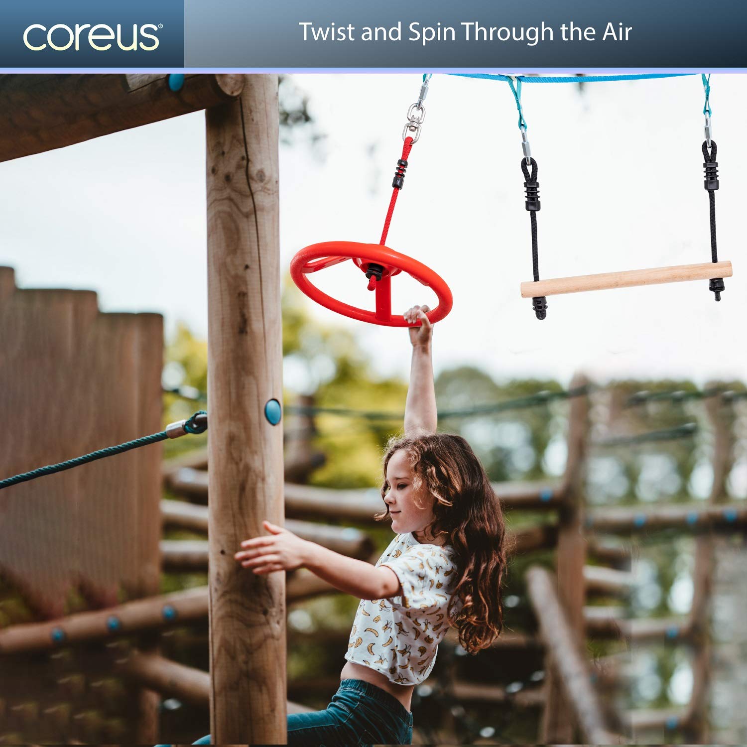 View compareNinja Kids Hanging Obstacle Course With Swivel Slackline Spinner Wheel Red