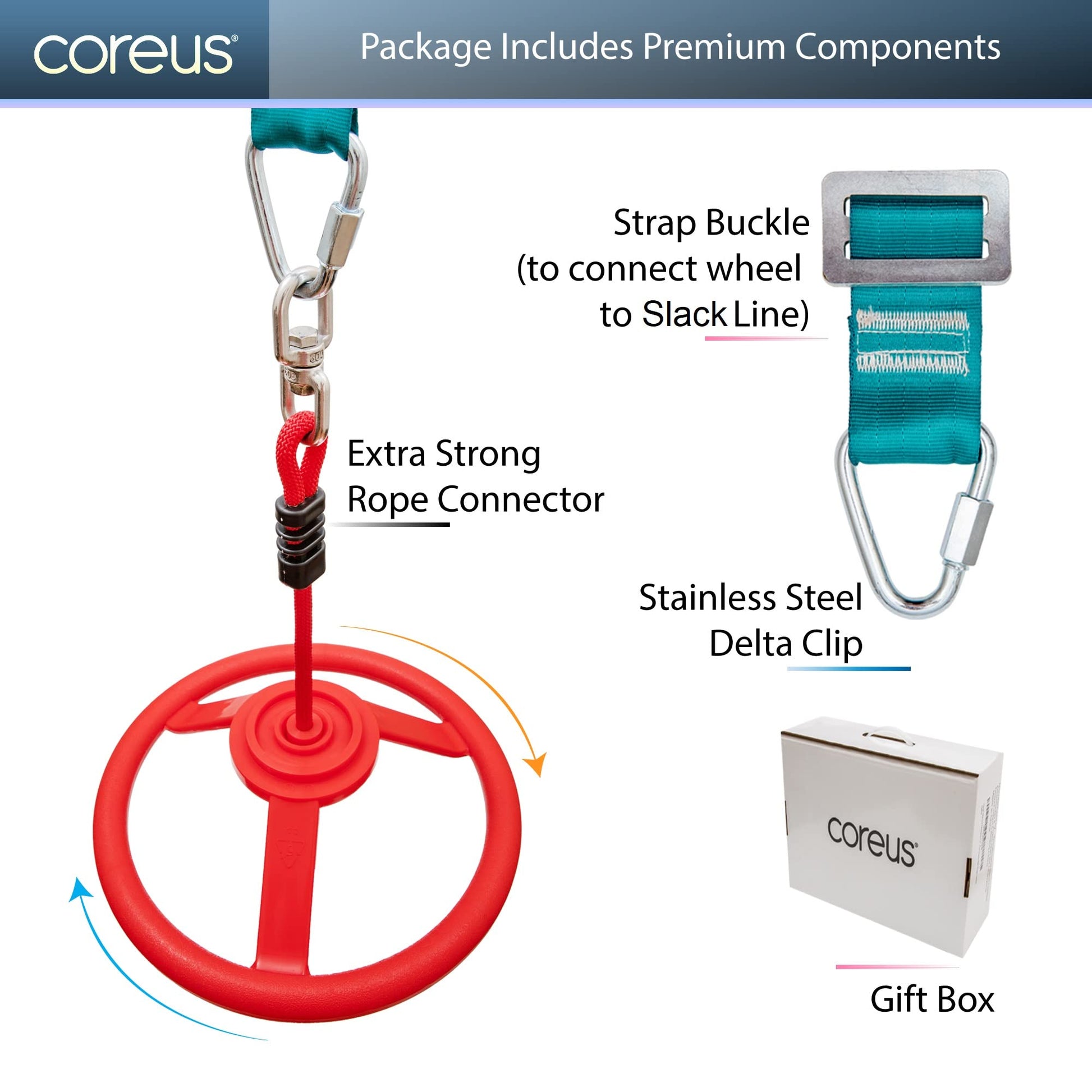 Ninja Kids Hanging Obstacle Course With Swivel Slackline Spinner Wheel Red