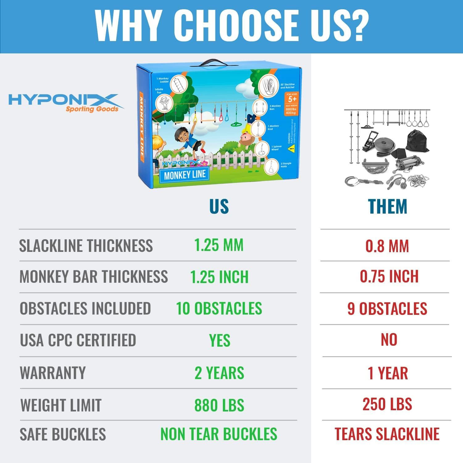 - Q: How does the Ratchet-Tight Technology benefit the slackline during play? A: The Ratchet-Tight Technology minimizes slackline sagging, ensuring a stable and secure play environment for kids as they enjoy swinging, jumping, and climbing on the course.