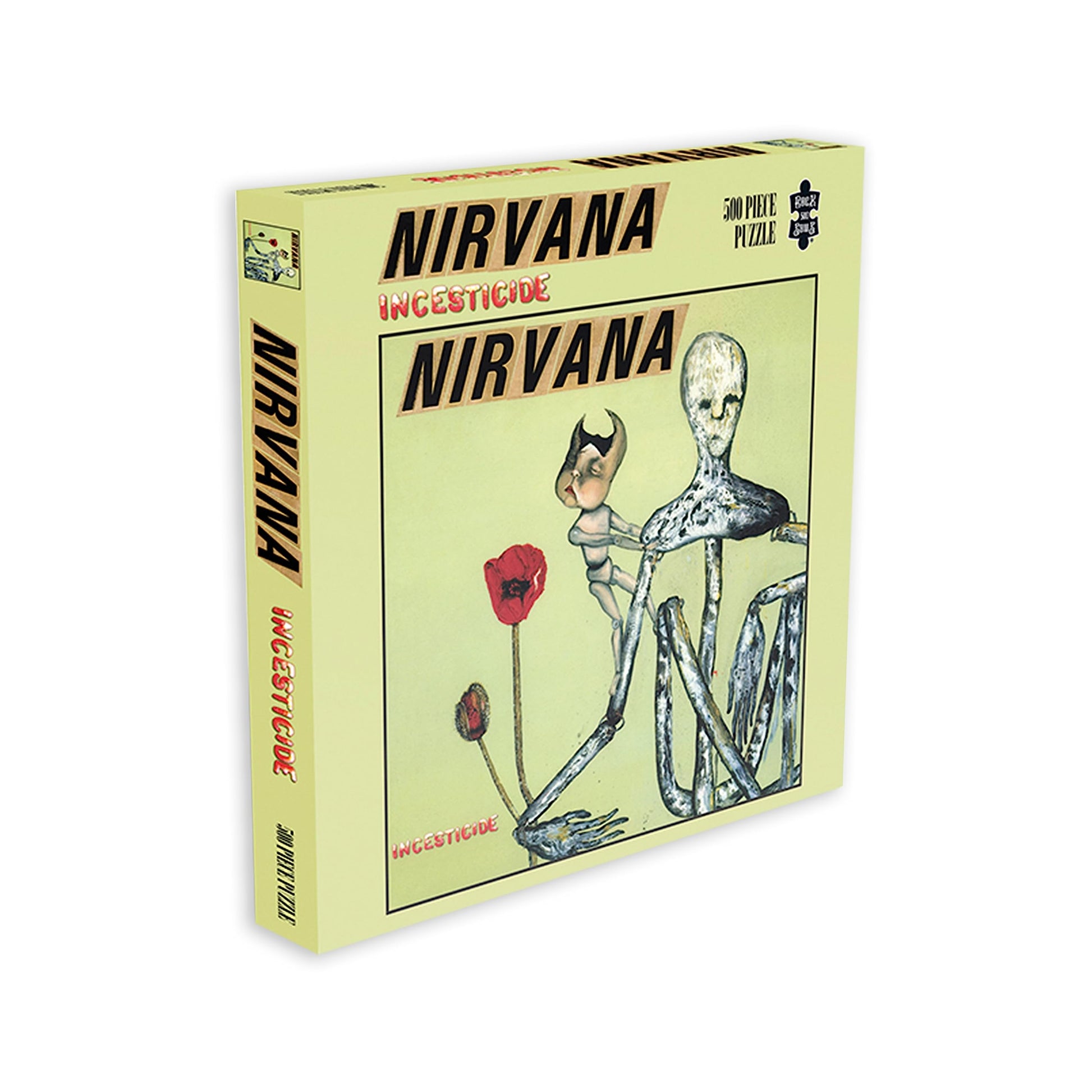 Incesticide' is a compilation album by the American rock band Nirvana. It consists of their 1990 non-album single 'Sliver', B-sides, demos, outtakes, covers, and radio broadcast recordings. The album was released on December 14, 1992, in Europe, and December 15, 1992, in the United States. It eventually reached number 39 on the Billboard 200. Early in 1992, Jonathan Poneman of Sub Pop contacted Gary Gersh, who had previously signed Nirvana to Geffen/DGC Records, to inform him that Sub Pop still had a number of unreleased early Nirvana recordings in their possession. The band had originally intended to release the material via Sub Pop and cynically called it Cash Cow. However, Sub Pop could not match Geffen's distribution network, and the band felt that getting the material maximum exposure was important. Sub Pop sold the recordings to Geffen for 'a six-figure amount' on the condition that the band would create and approve the release of an album by Christmas 1992. At the time, the majority of the material on Incesticide was circulating within fan communities (albeit in lower quality). It was widely reported in the music press that the band wanted to offer fans a higher-quality alternative. In the book Cobain Unseen, Charles R. Cross writes that Kurt Cobain agreed to the release of this compilation because he was allowed complete control over the album's artwork. That artwork is now available as a 500 piece jigsaw puzzle printed on high quality board.500 pieces, Weight: 490g, Jigsaw size: 41 cm x 41 cm, Box size: 30.9cm x 30.9cm x 2.8cm
