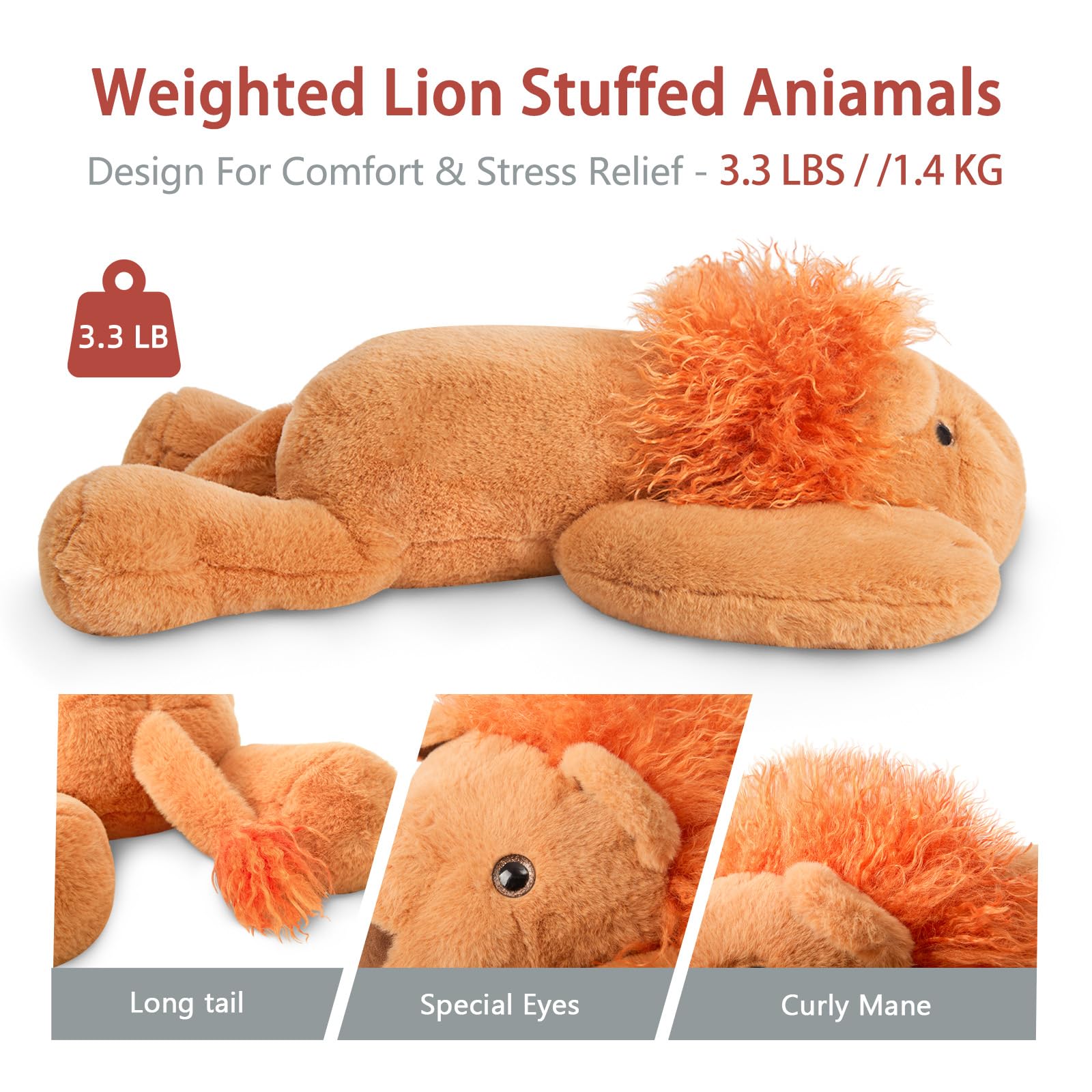 Niuniu Daddy 20'' | 3.3 Pound Weighted Lion Stuffed Animals For Adults, Cute Soft Lion Plush Toy For Toddler Teens Kids, Large L