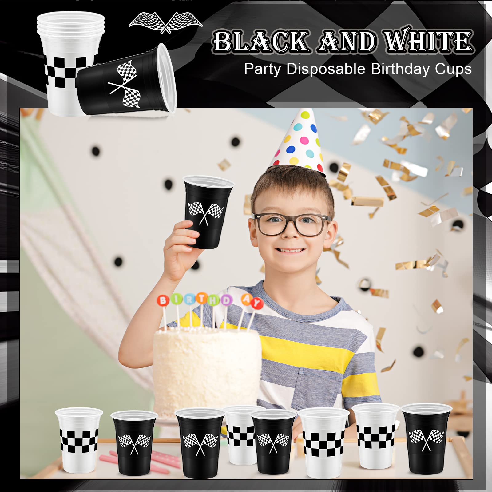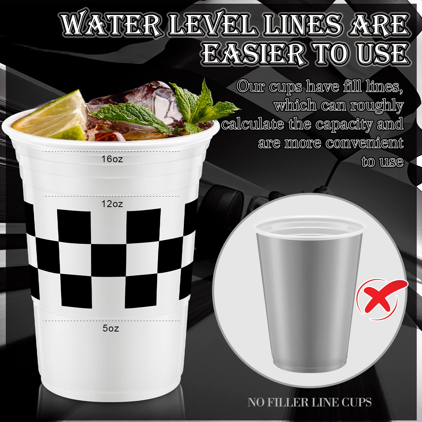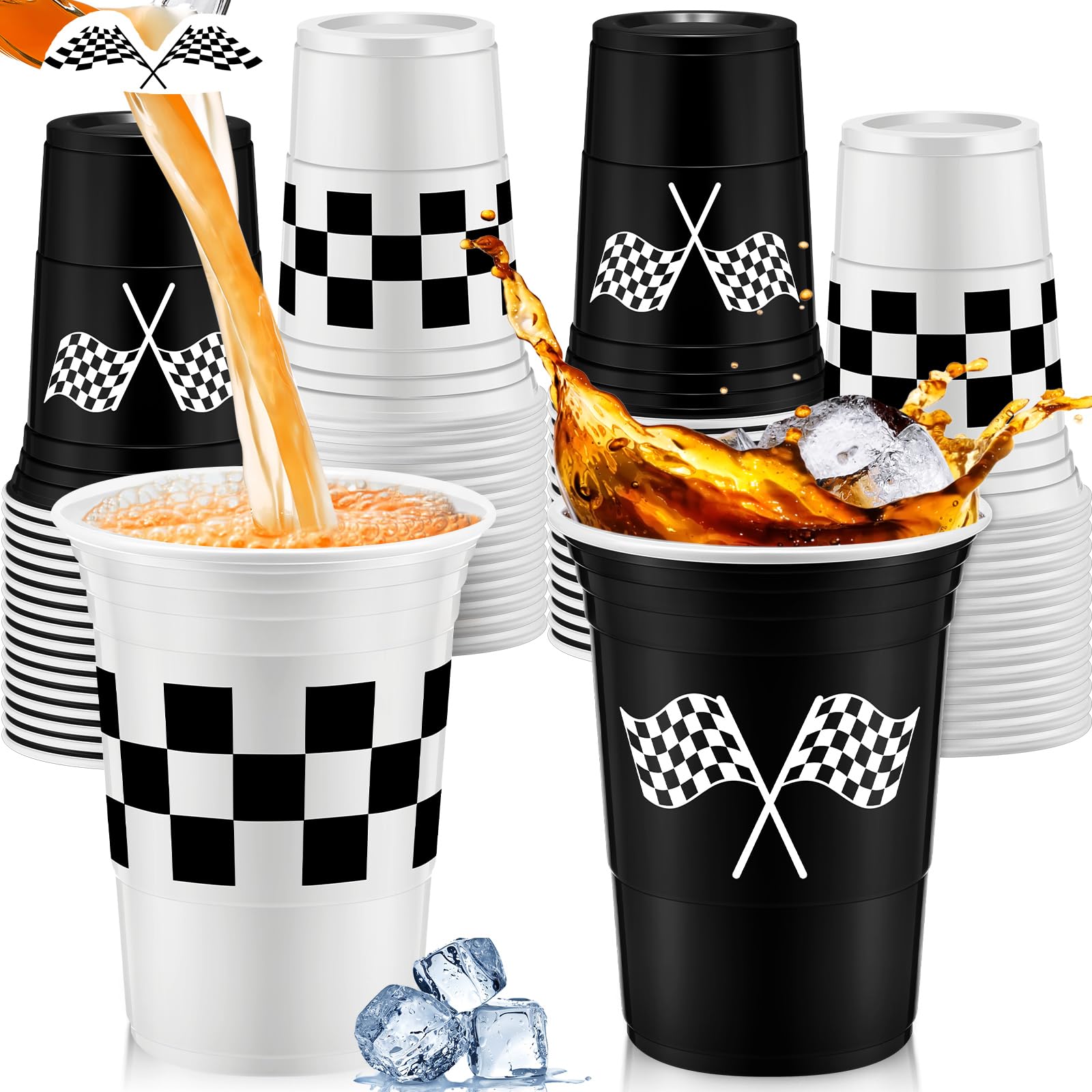 View compareNorme 48 Pcs Checkered Flag Party Supplies Bulk 16 Oz Race Car Cups Thick Plastic Cup For Racing Themed Birthday Party (Checkered Flag)