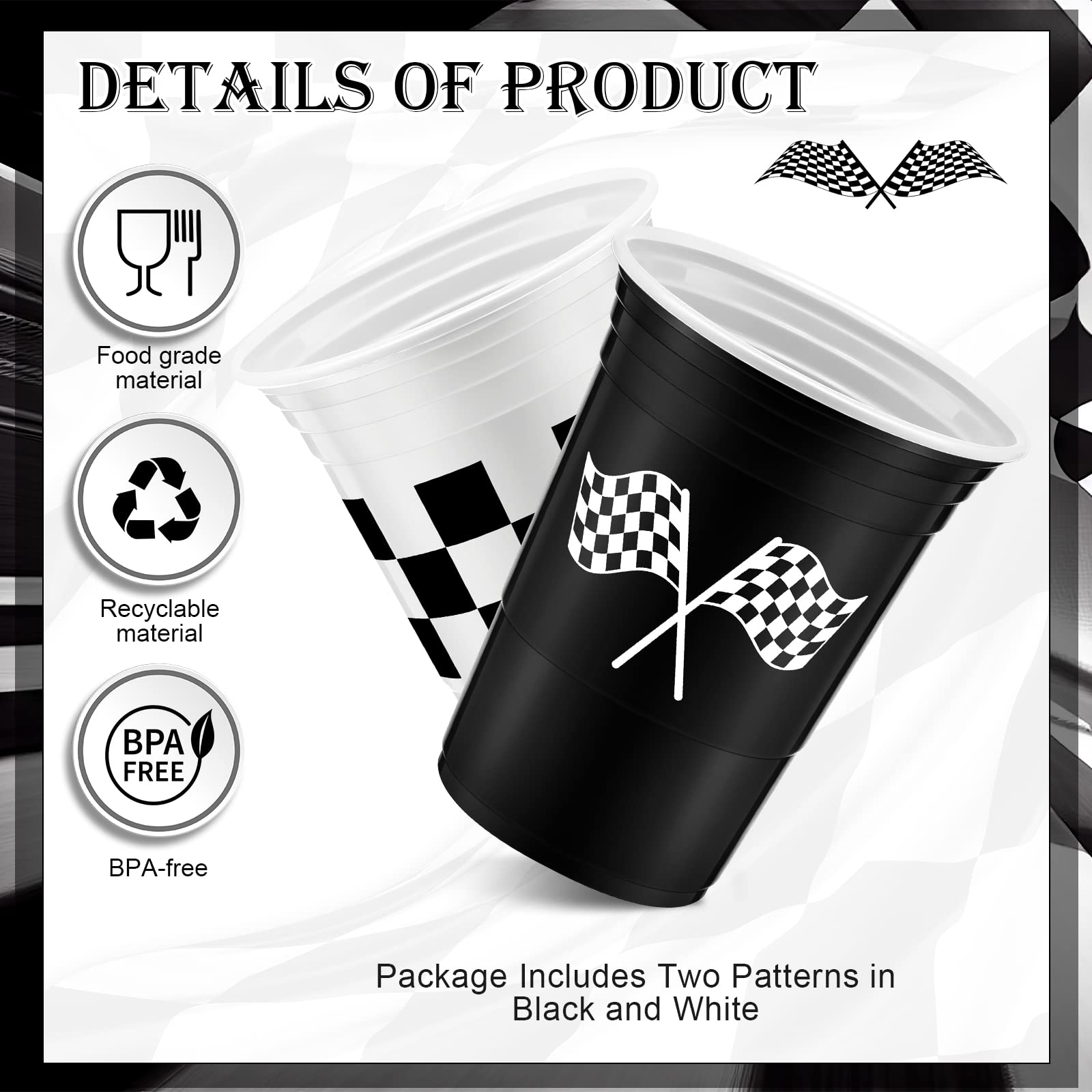 Norme 48 Pcs Checkered Flag Party Supplies Bulk 16 Oz Race Car Cups Thick Plastic Cup For Racing Themed Birthday Party (Checkered Flag)