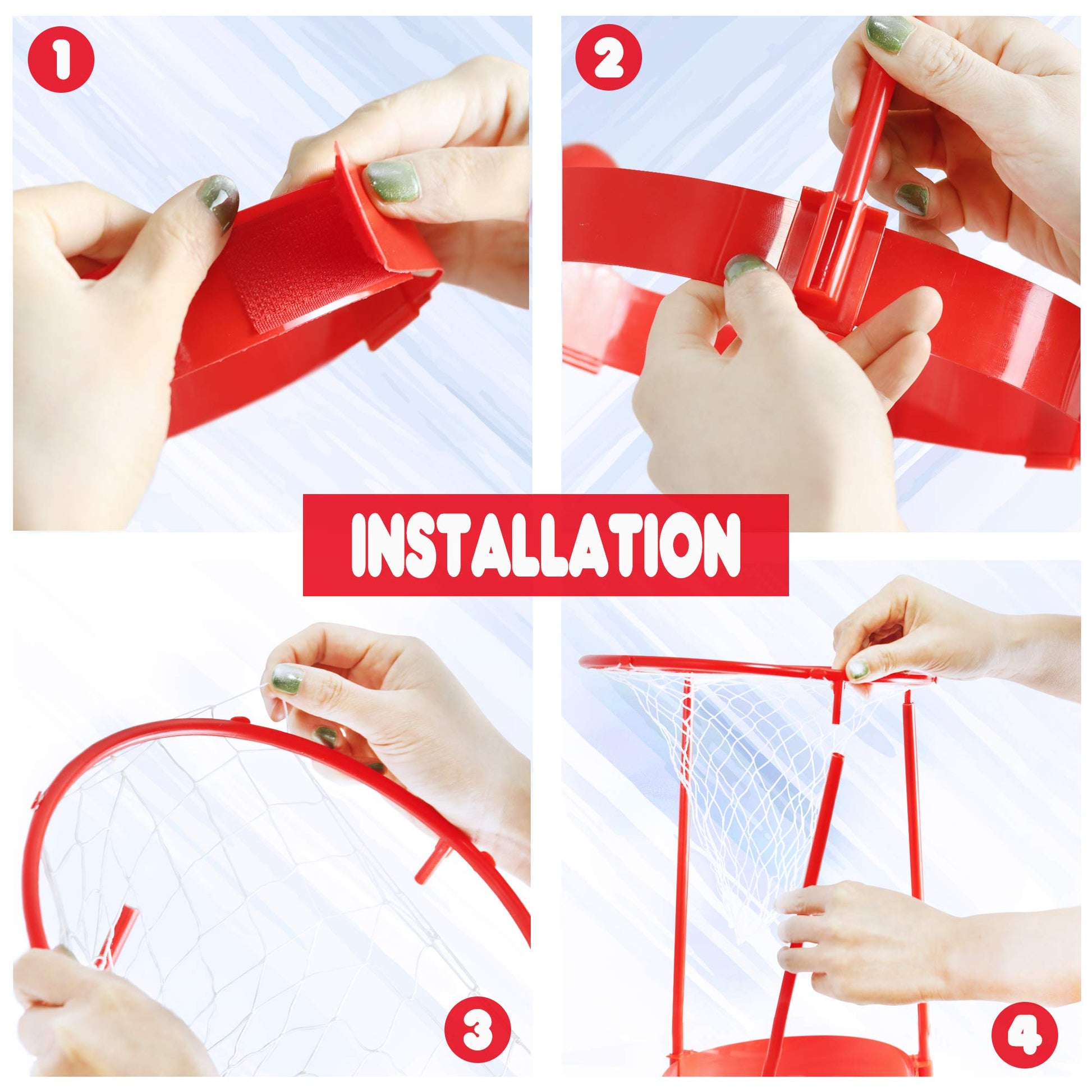 Cool Party Games!Looking for some great icebreakers for your party? This head hooping basketball game is definitely a must-have crowd pleaser, will keep your guests entertained and laughing all the way to the end.How To PlayCan you throw in? Fasten the headband shooting basket on the head, you can try to toss the balls into the basket on the top your head. Or make it a head-to-head competition between multi players. One Size Fits All!Headband can be adjusted approx. from 6-3/4 to 7-1/2 in diameter to fit for most kids and adults to wear. A perfect case to provide you with hours of fun indoors and outdoors.Package IncludesEach package comes with 2 sets of head basketball hoop, 2 headbands, 2 hoops, 2 nets, 6 tubes, 10 white balls, 10 red balls, makes a great present to your loved kids and friends!CommitmentWe stand behind our products! Please feel free to contact us if you have any questions or concerns.