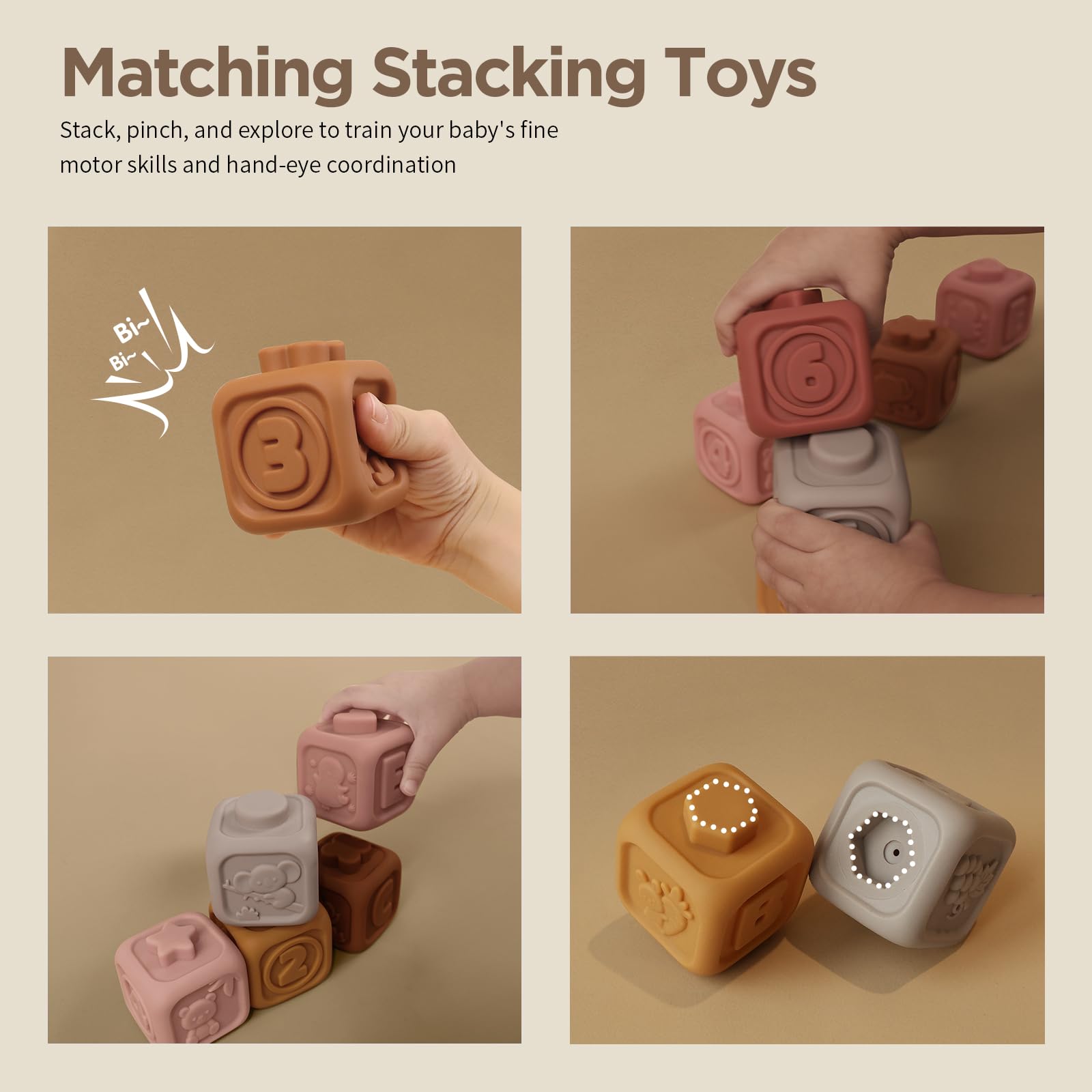 • Q: Can these building blocks help with my baby's hearing development? A: Yes, the blocks feature a unique 'Press Squeak' design that produces a soft whistle sound when squeezed, which attracts your baby's attention and supports their auditory development.
