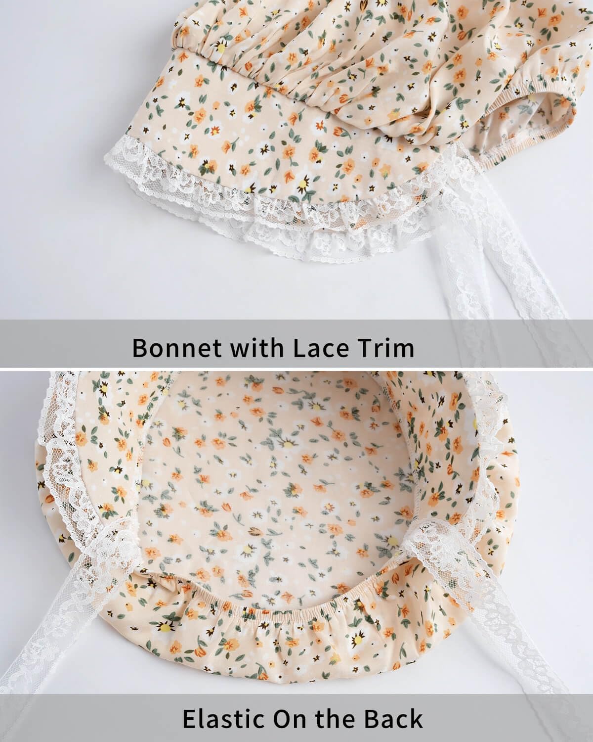 This pioneer girl dress fastens with buttons at the center front and features a white broadcloth apron that ties at the waist. The sleeves of the dress have shoulder ruffles as well as elastic at the cuffs. Peter pan collar, white ruffled hemline for added detail. This prairie girl dress also comes with a traditional white bonnet with elastic at the back and an under-chin tie. This Colonial Village Girl Costume turns your child into a pilgrim from the Colonial Period!