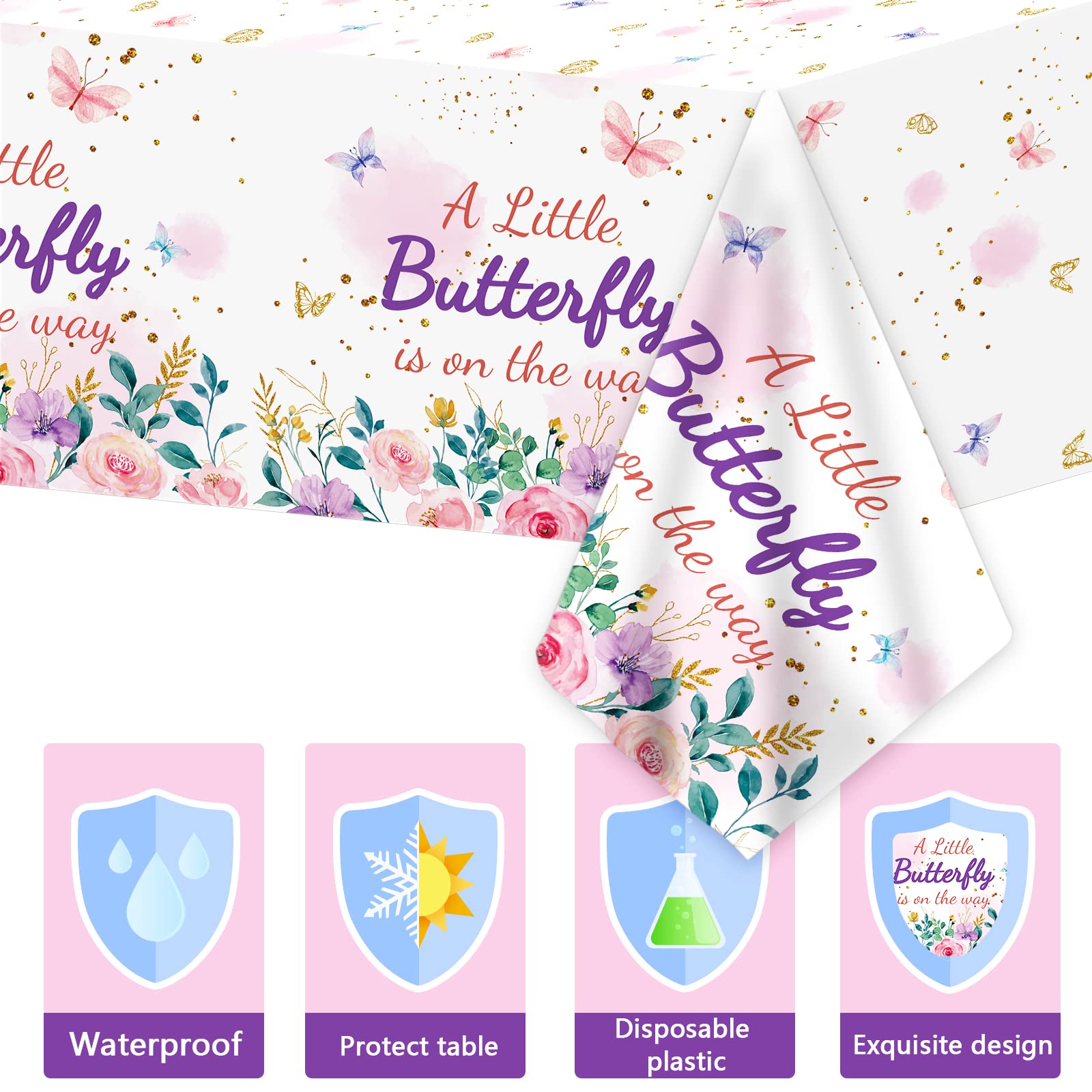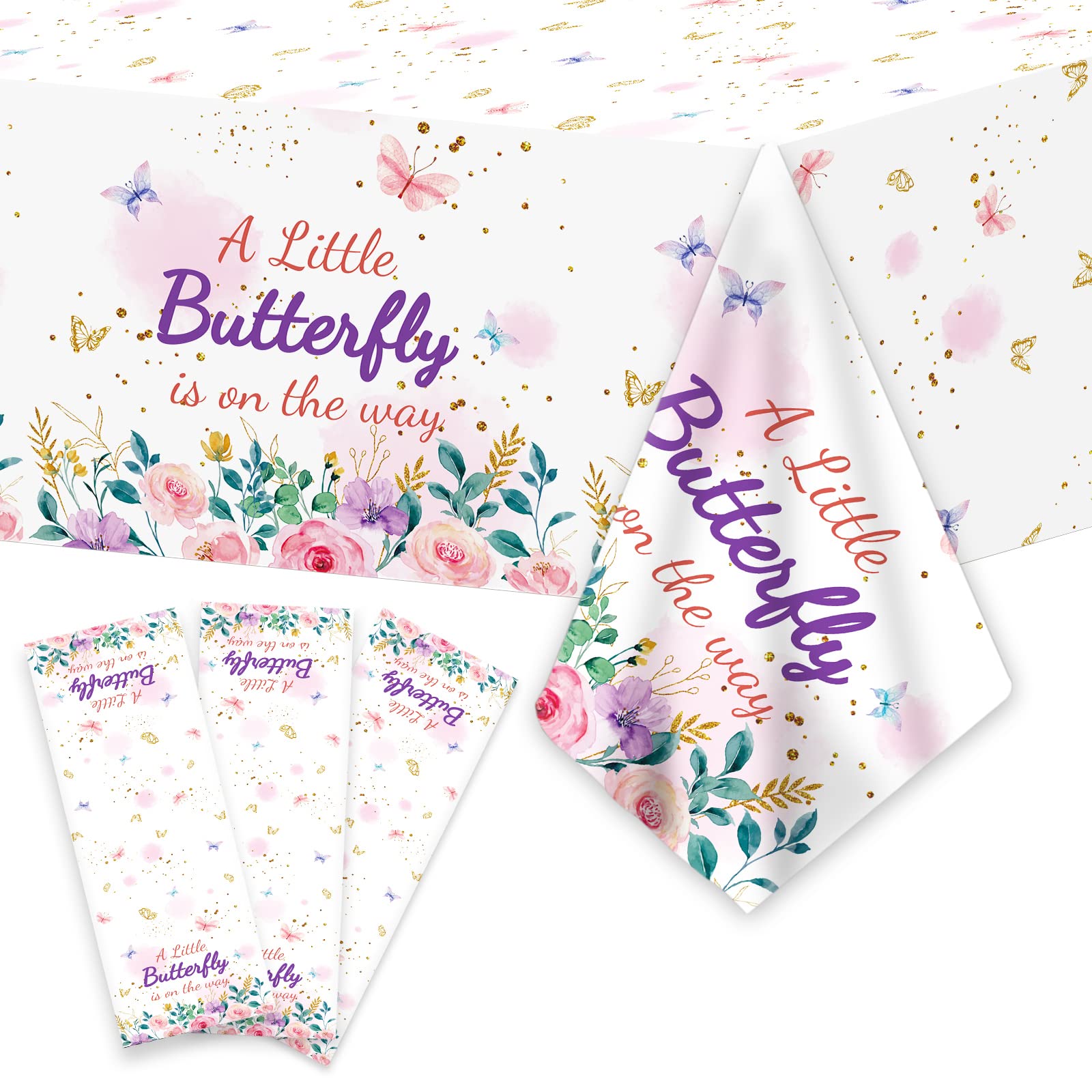 Obusatt 3Pcs Butterfly Baby Shower Party Tablecloth Supplies A Little Butterfly Is On The Way Baby Girl Party Disposable Plastic