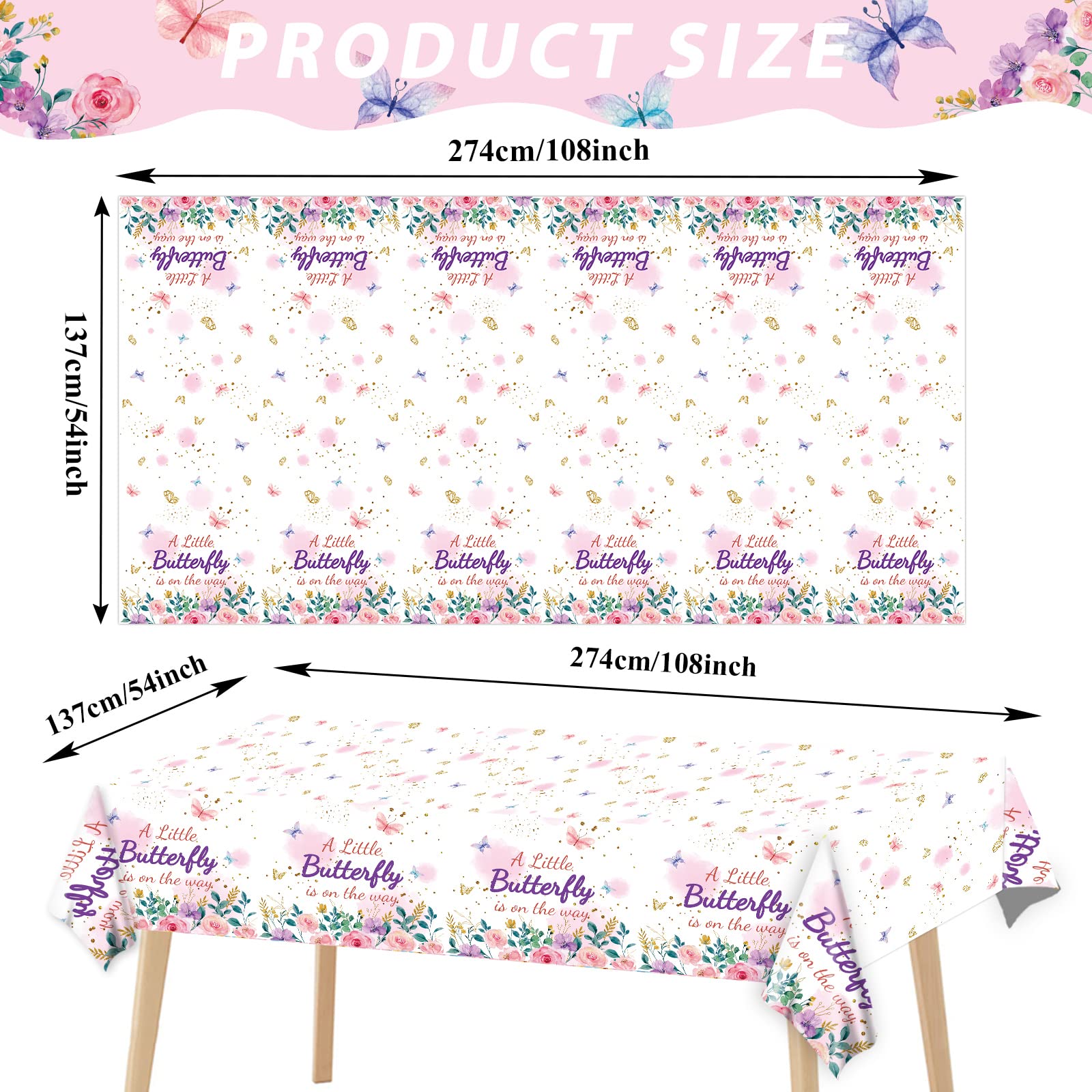 - Q: Do the tablecloths feature any specific designs or colors? A: Yes, the tablecloths feature vibrant floral patterns with a 'a little butterfly is on the way' theme, designed specifically for a princess baby girl party, adding a dreamy atmosphere to your celebration.
