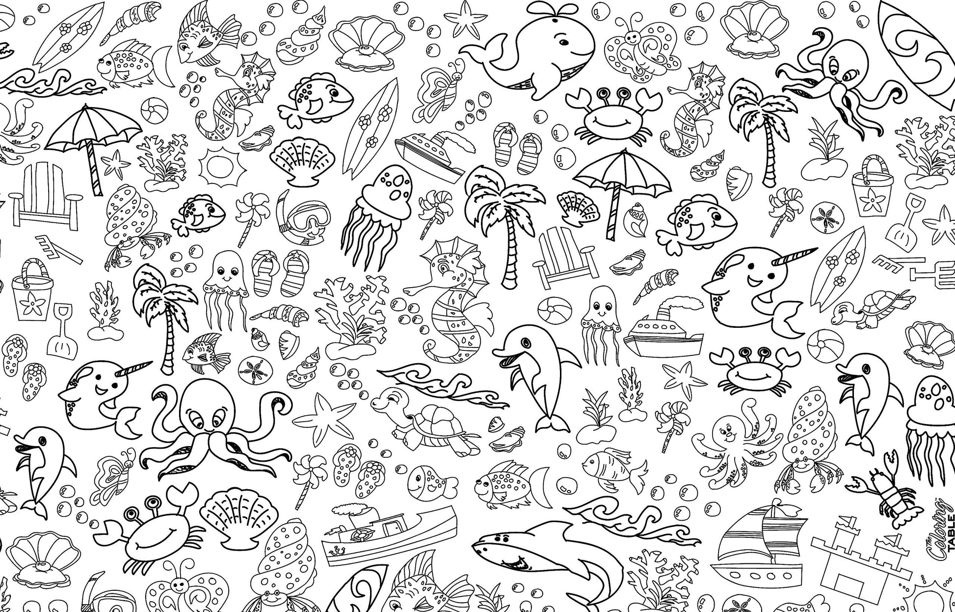 Oceantime Fun Design - Square Tablecloth 60 X60 - Interactive Coloring Tablecloth for Kids - Poly/Cotton Fabric - Washable