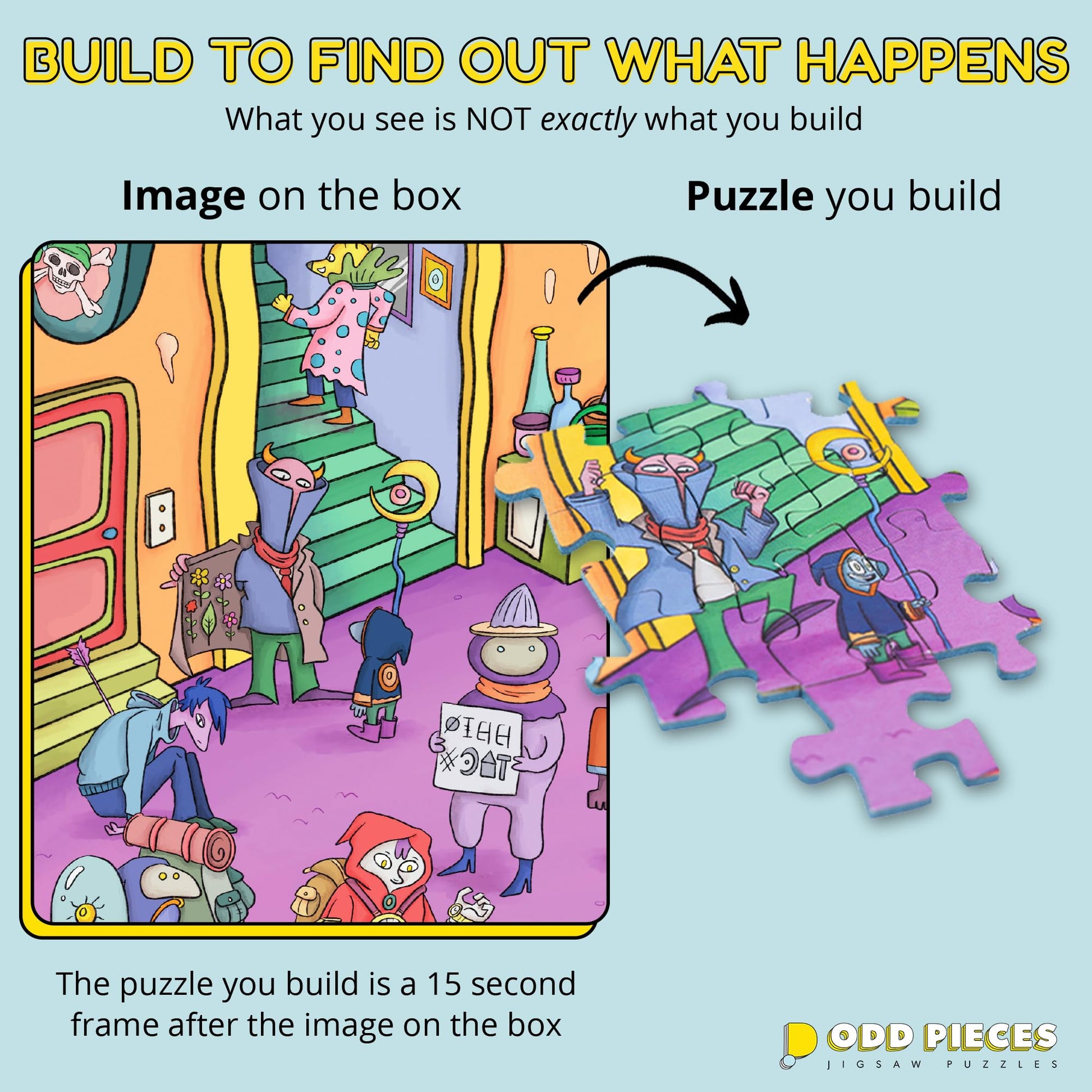 - Q: What makes the Odd Pieces Mystery Jigsaw Puzzle different from regular puzzles? A: The Odd Pieces Mystery Jigsaw Puzzle combines traditional jigsaw puzzling with storytelling elements, including comics and treasure hunt clues. Unlike standard puzzles, the completed image reveals a surprise ending that ties into a unique storyline.