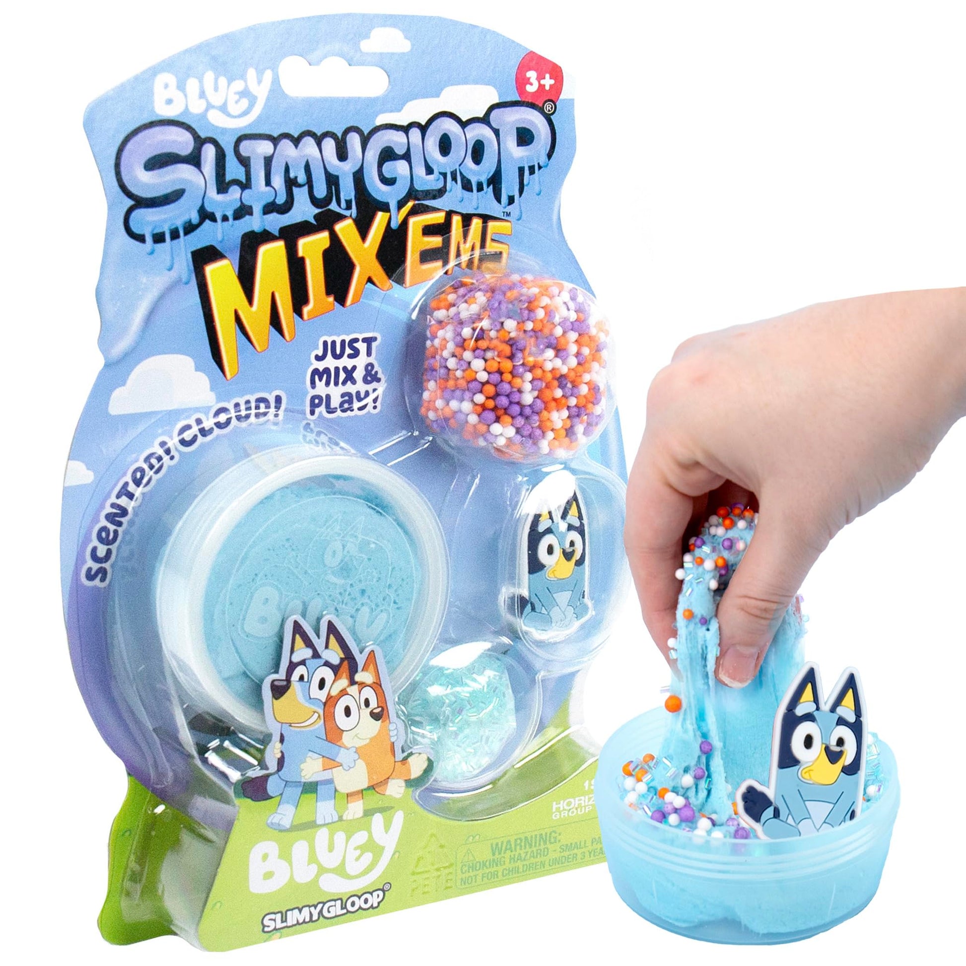 Official Bluey Slimygloop Mix'Ems, Pre-Made Cloud Slime, Bubblegum Scent, Fun Slime Add Ins Including Bluey Charm, Foam Balls, Glitter, Fidget Toy, Super Soft Non-Sticky Stress Relief Toy, Bluey Toys