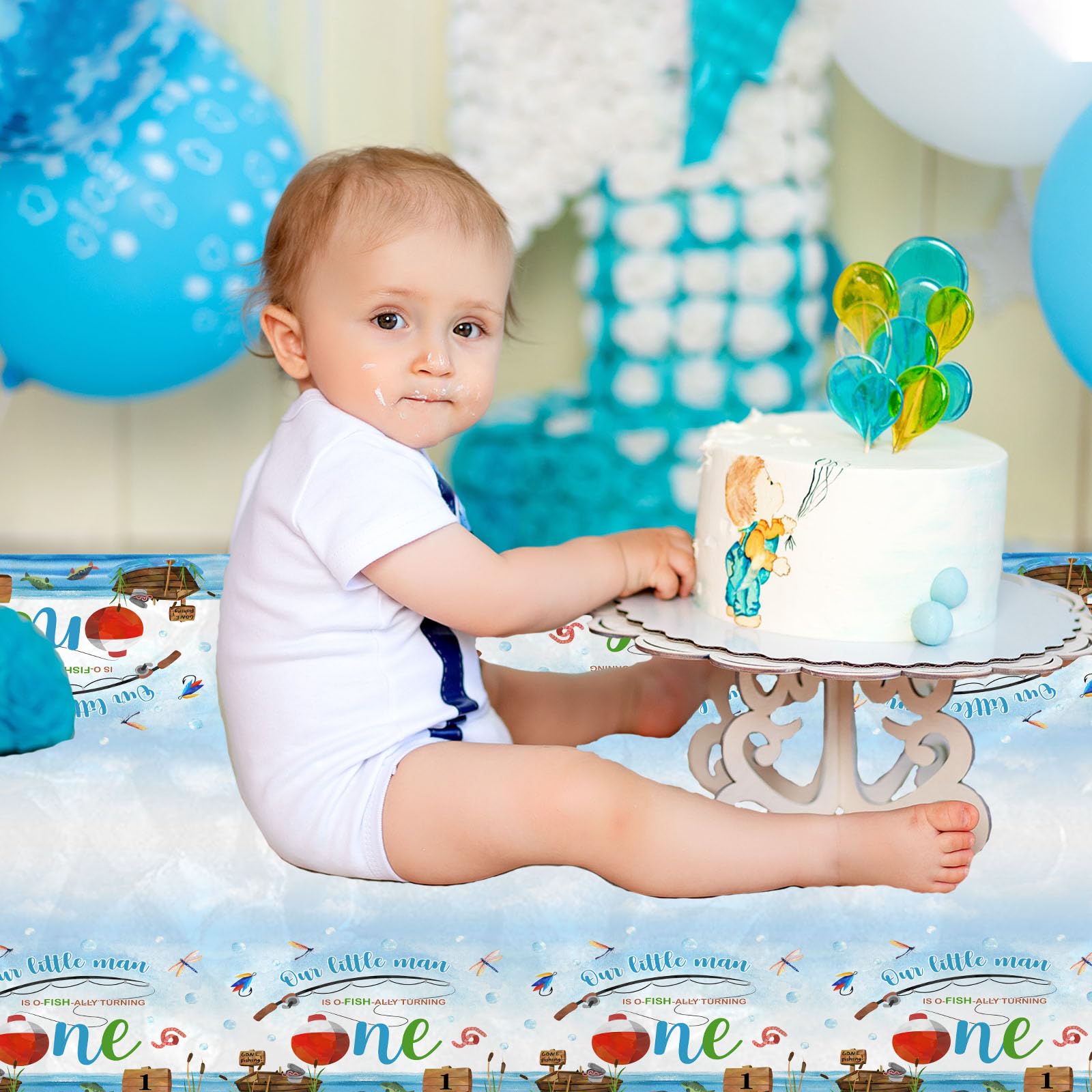 View compareOfishally One Birthday Decorations, 3Pcs Gone Fishing 1St Birthday Party Supplies Tablecloth, Little Fisherman Gone Fishing Rect