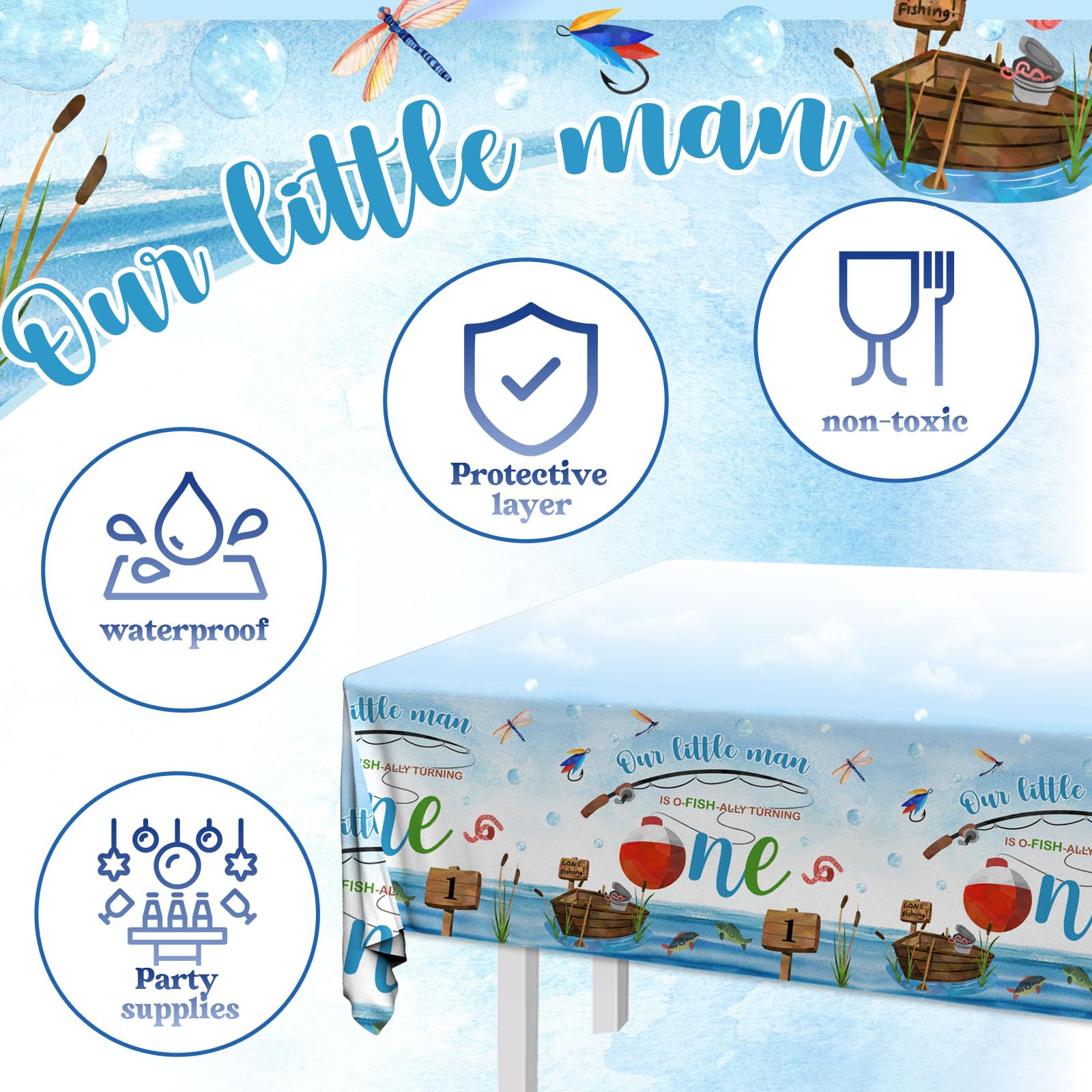 - Q: What occasions is this tablecloth suitable for? A: This tablecloth is perfect for a variety of occasions, including kids' gone fishing birthday parties, baby showers, and any fishing-themed celebrations, providing a vibrant backdrop for your special events.